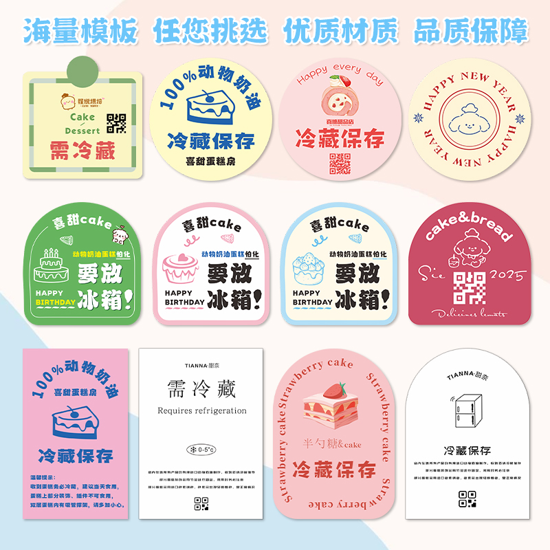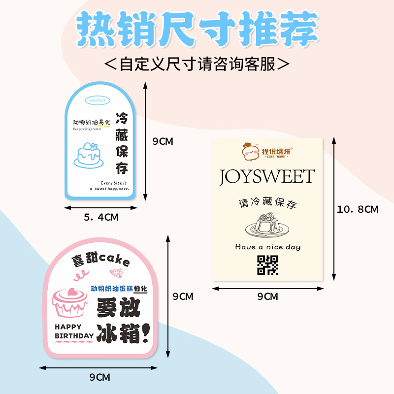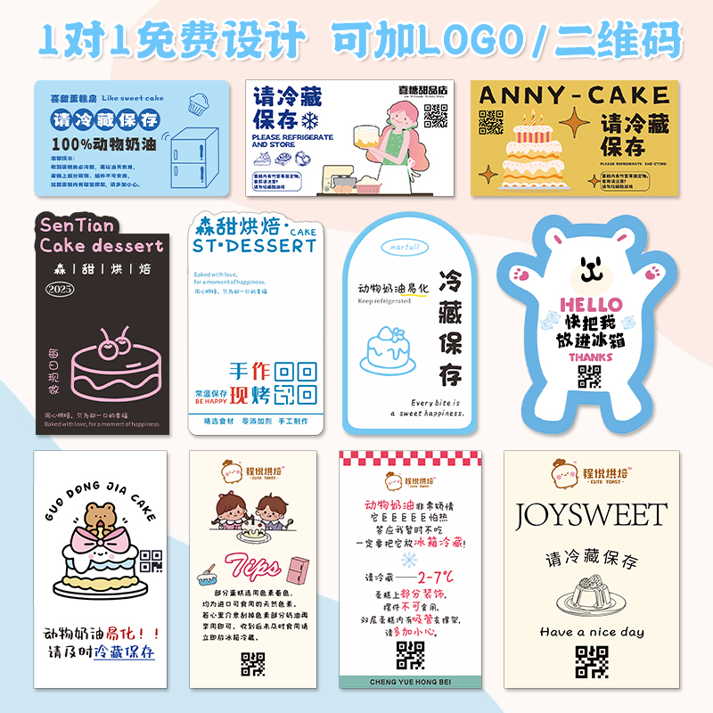 蛋糕温馨提示贴纸定制奶油慕斯烘焙冷藏防水不干胶二维码封口打印