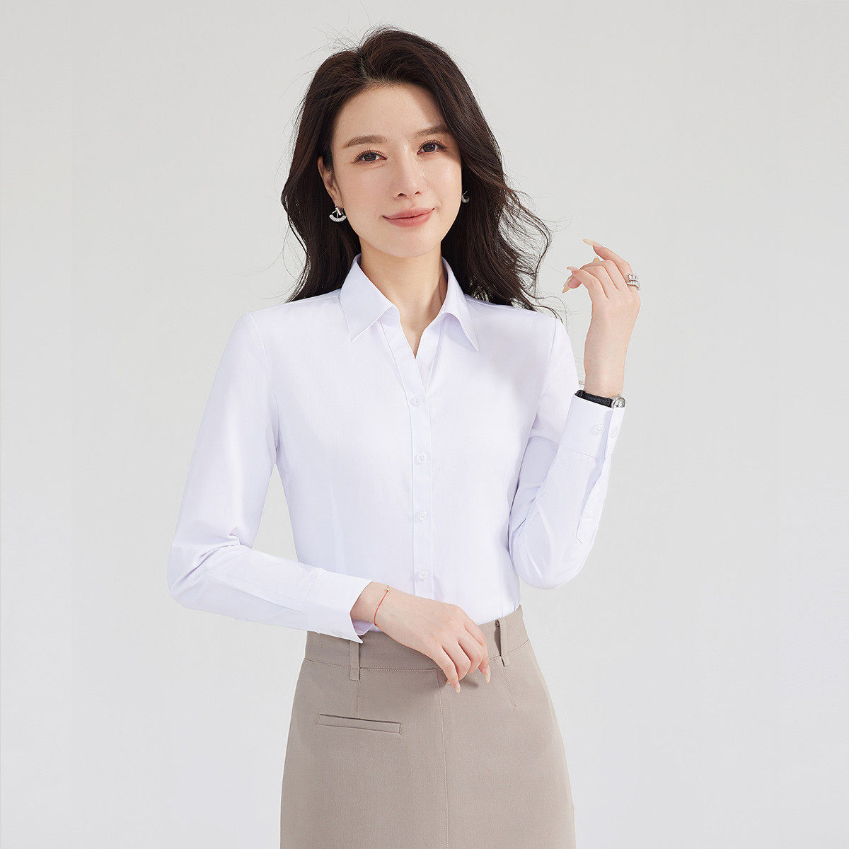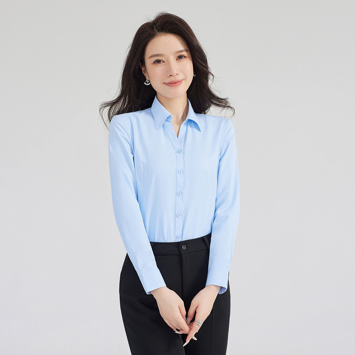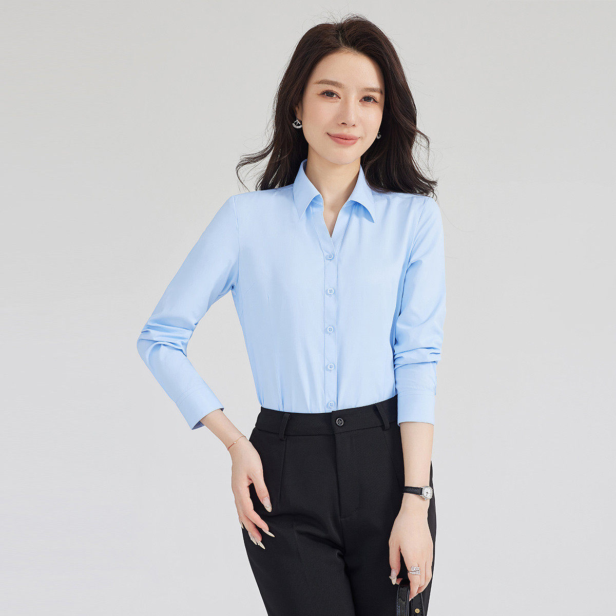 罗蒙女士长袖衬衫简约百搭V领舒适微弹大方商务休闲通勤上衣女