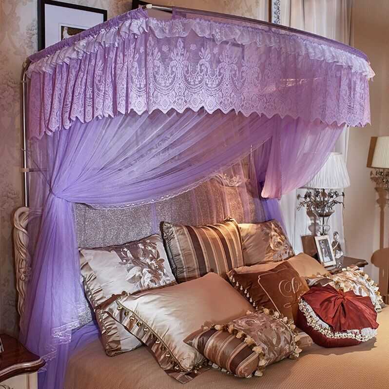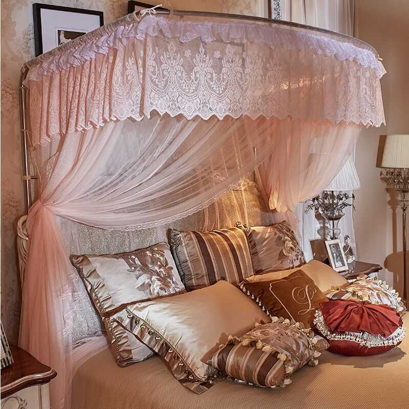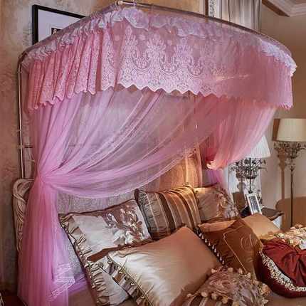 新款直销伸缩蚊帐三开门U型1.5m1.8米床公主风家用不锈钢支架双人