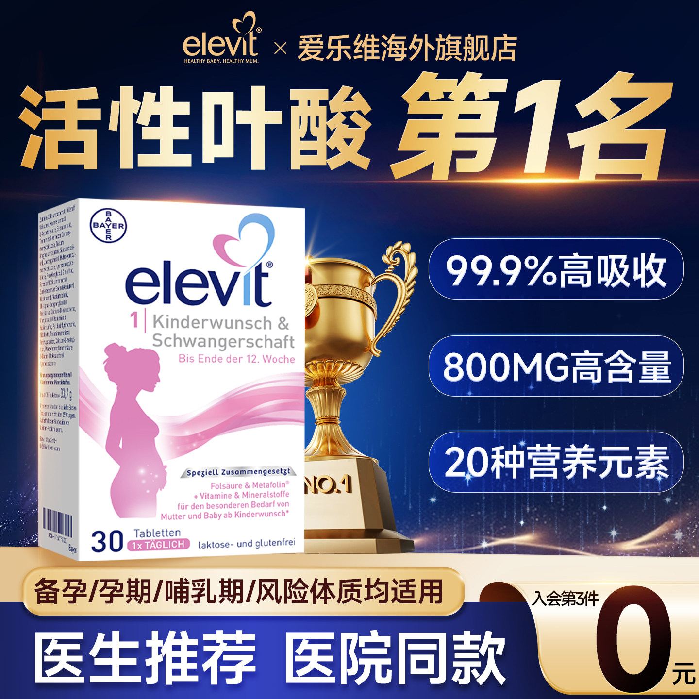 【官旗】爱乐维活性叶酸孕妇专用
