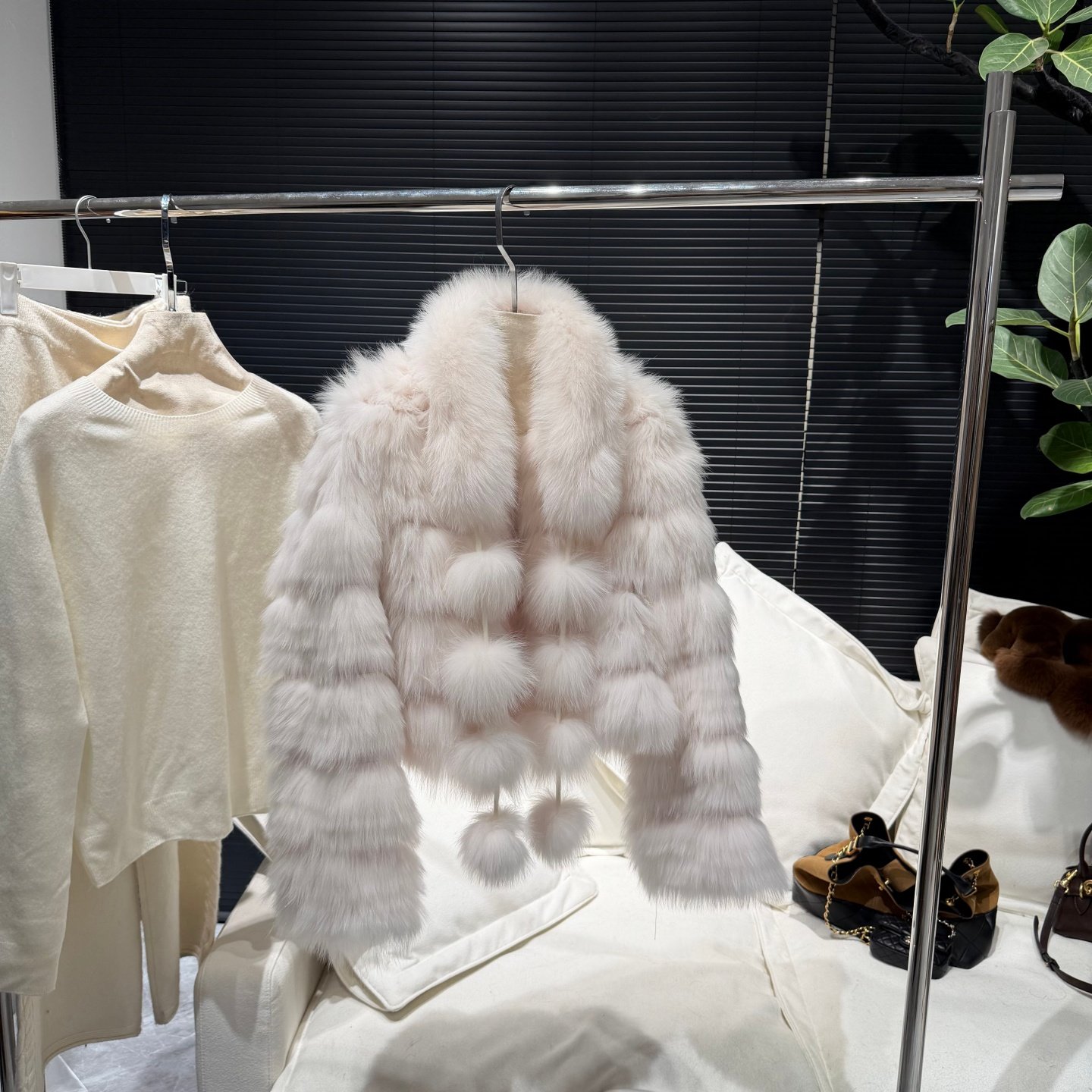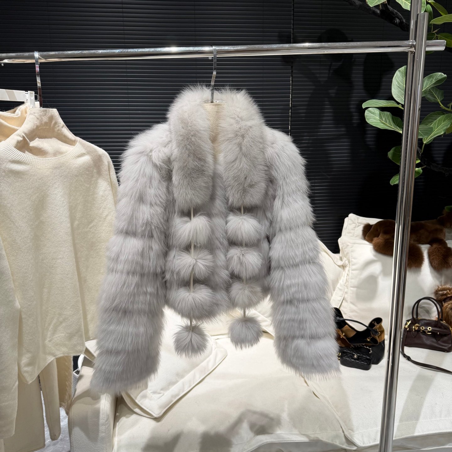 拼条双色狐狸毛皮草外套