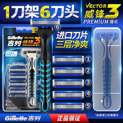 吉列威锋3手动剃须刀进口男士锋速刮胡刀3层刀片1刀架6刀头套装