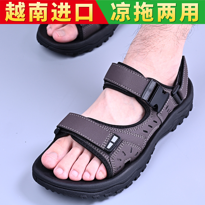 皮凉鞋男士沙滩鞋夏季中老年爸爸休闲老人宽面防滑越南凉拖两用