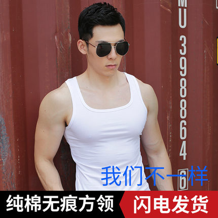 纯棉方领男士背心运动健身跨栏薄款无痕黑色背心男夏季两根筋汗衫