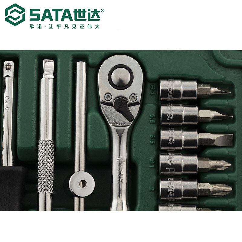 SATA世达工具套筒棘轮扳手飞扳升级52件6.3MM系列维修组套09002
