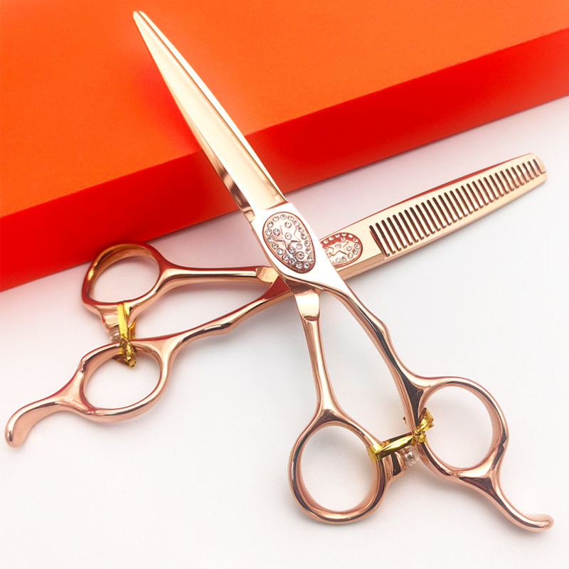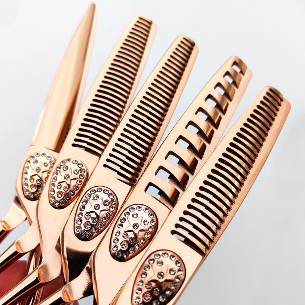 玫瑰金鸡克罗心专业美发剪刀发型师用理发剪子平剪鱼骨剪无痕牙剪