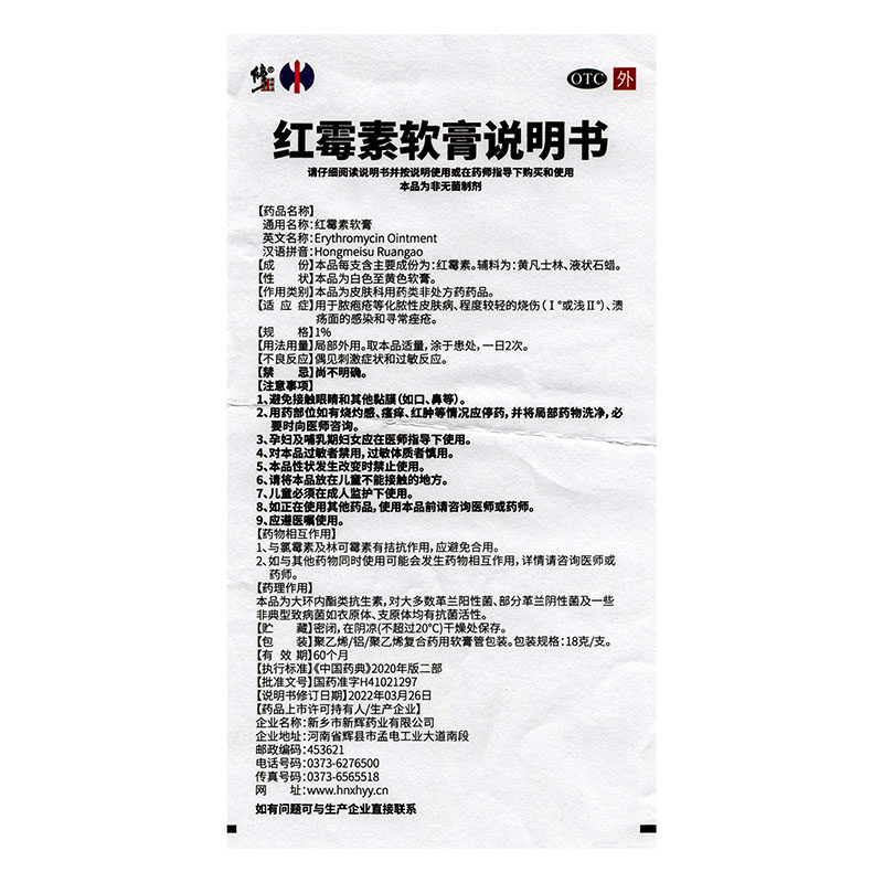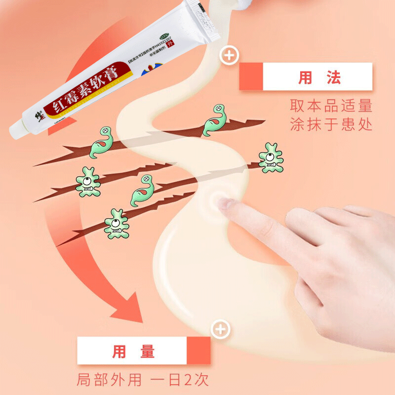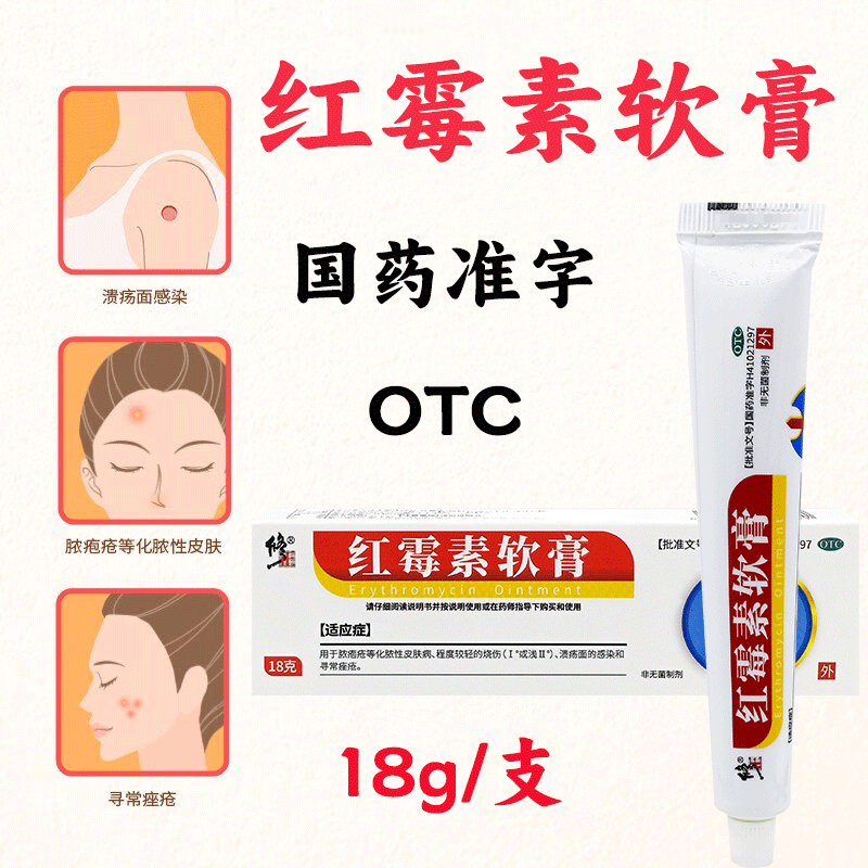 修正红霉素软膏外用药18g私处炎烧伤溃疡脓包痤疮正品痒止龟头消