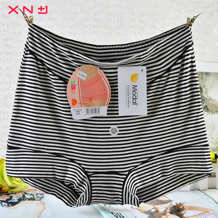 买三送一正品内裤女莫代尔夏高腰无痕条纹奢华收腹透气三角裤