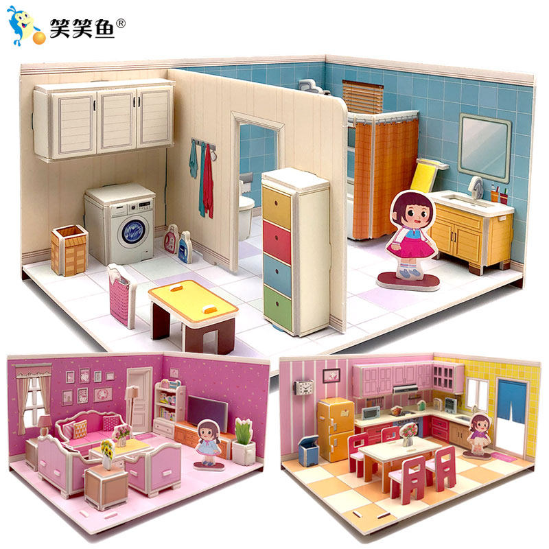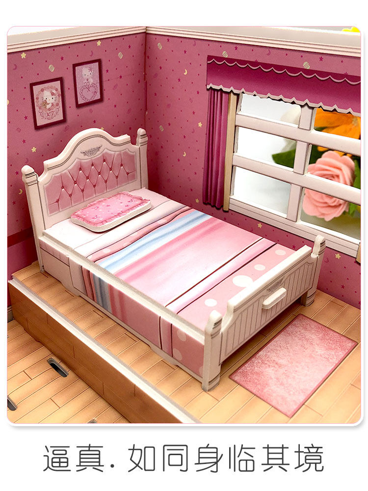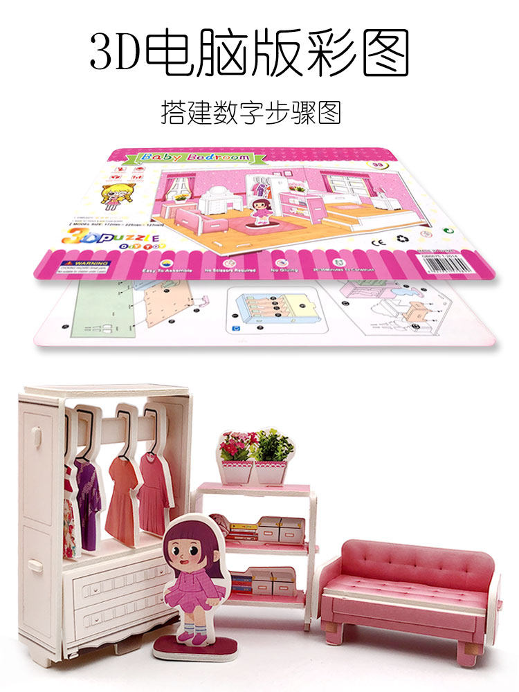 儿童3D立体拼图diy小屋房子卧室模型女孩房间纸质5岁拼装益智玩具