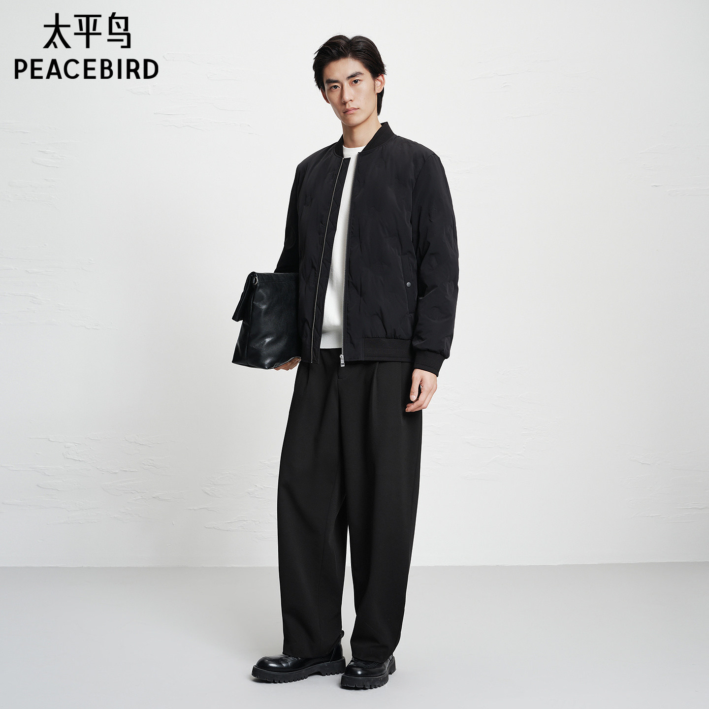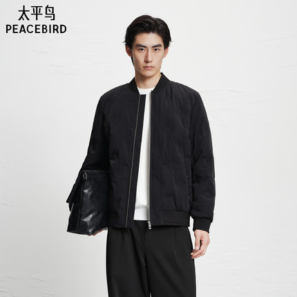 太平鸟男装 冬季棒球领羽绒服男立领90白鸭绒拉链保暖羽绒外套潮
