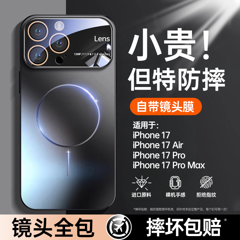 铂信新款磁吸适用苹果17promax手机壳iPhone16散热防摔15pro保护套14磨砂玻璃镜头膜全包magsafe男女高级air
