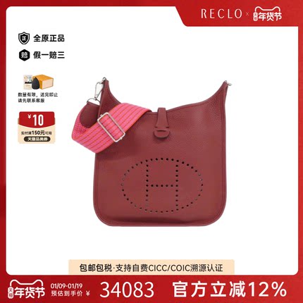 中古Hermes爱马仕女包A级95新CORDAGE Evelyn伊芙琳荔枝皮单肩包