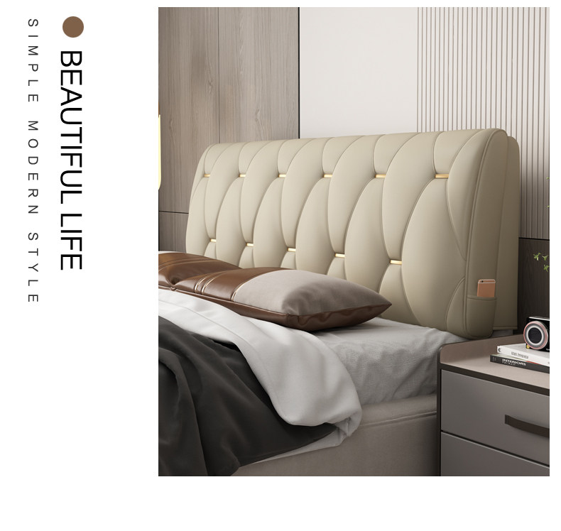 科技布床头靠垫榻榻米贴墙软包双人大靠背免洗床头罩北欧自粘靠背