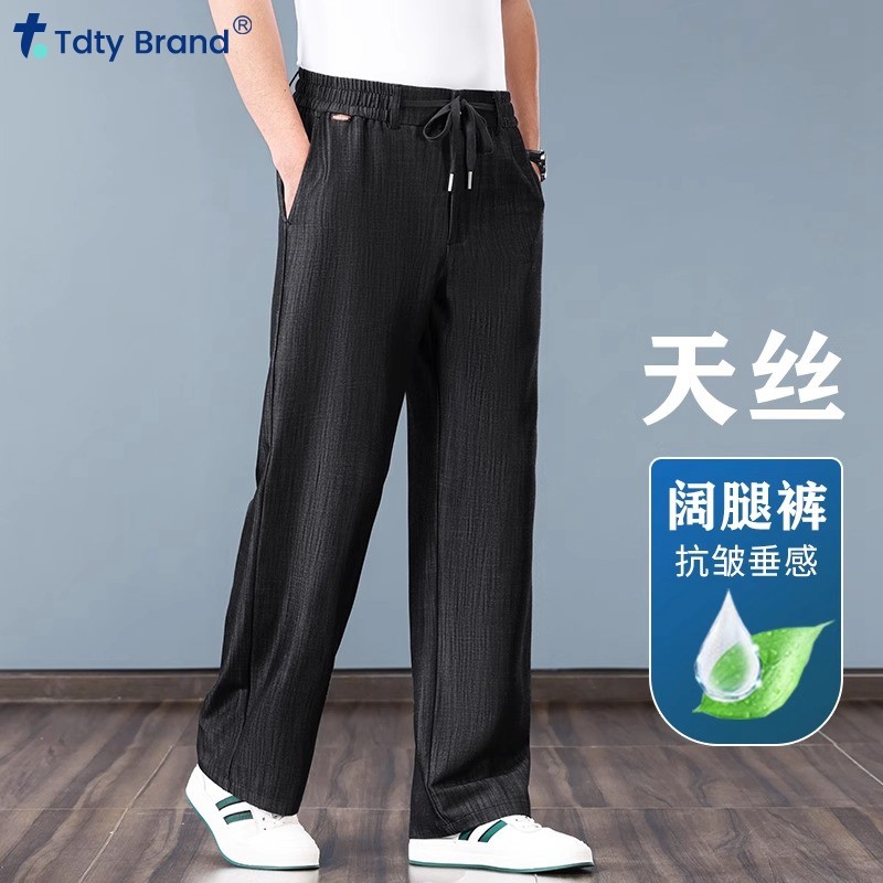 夏季薄款天丝阔腿裤男冰丝牛仔裤男宽松超薄高腰透气休闲裤男士