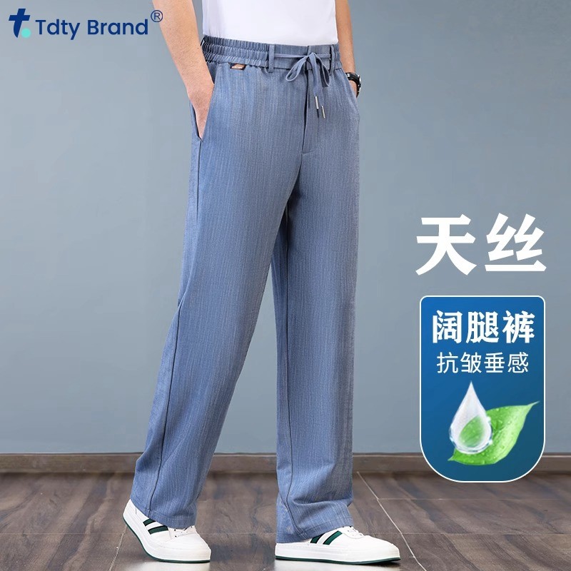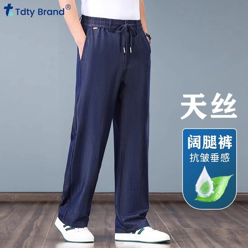 夏季薄款天丝阔腿裤男冰丝牛仔裤