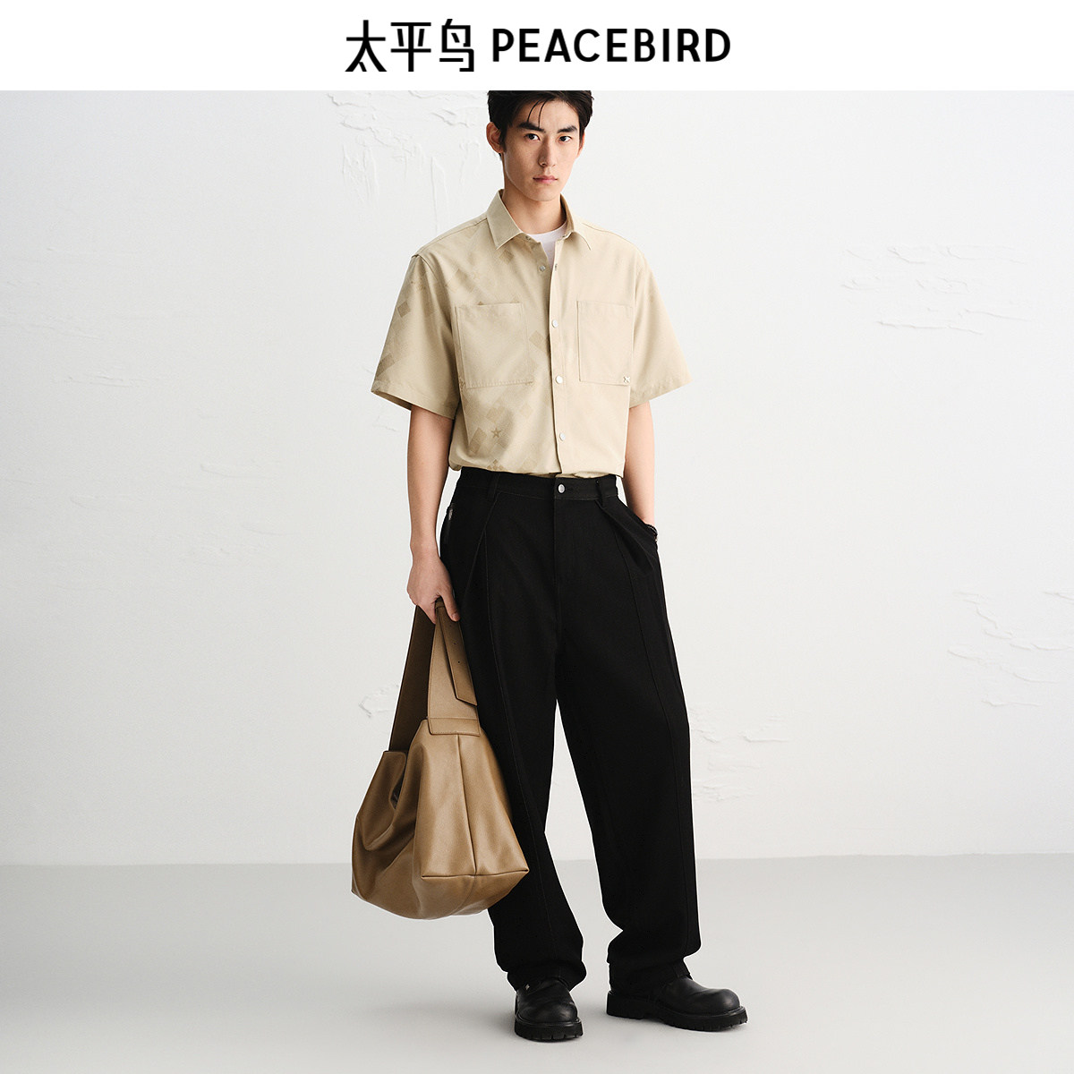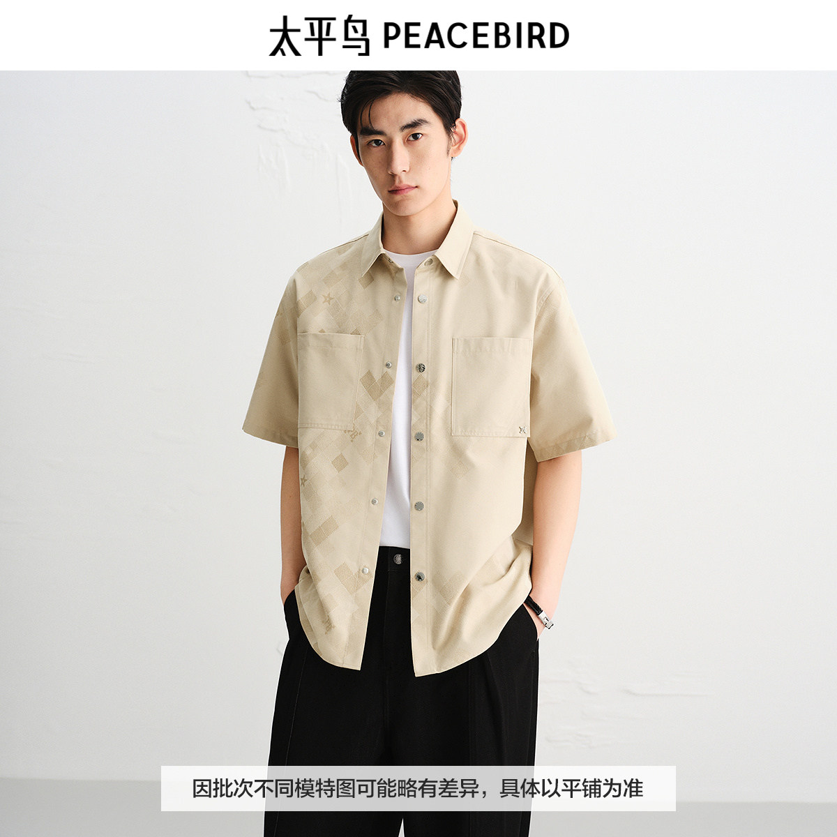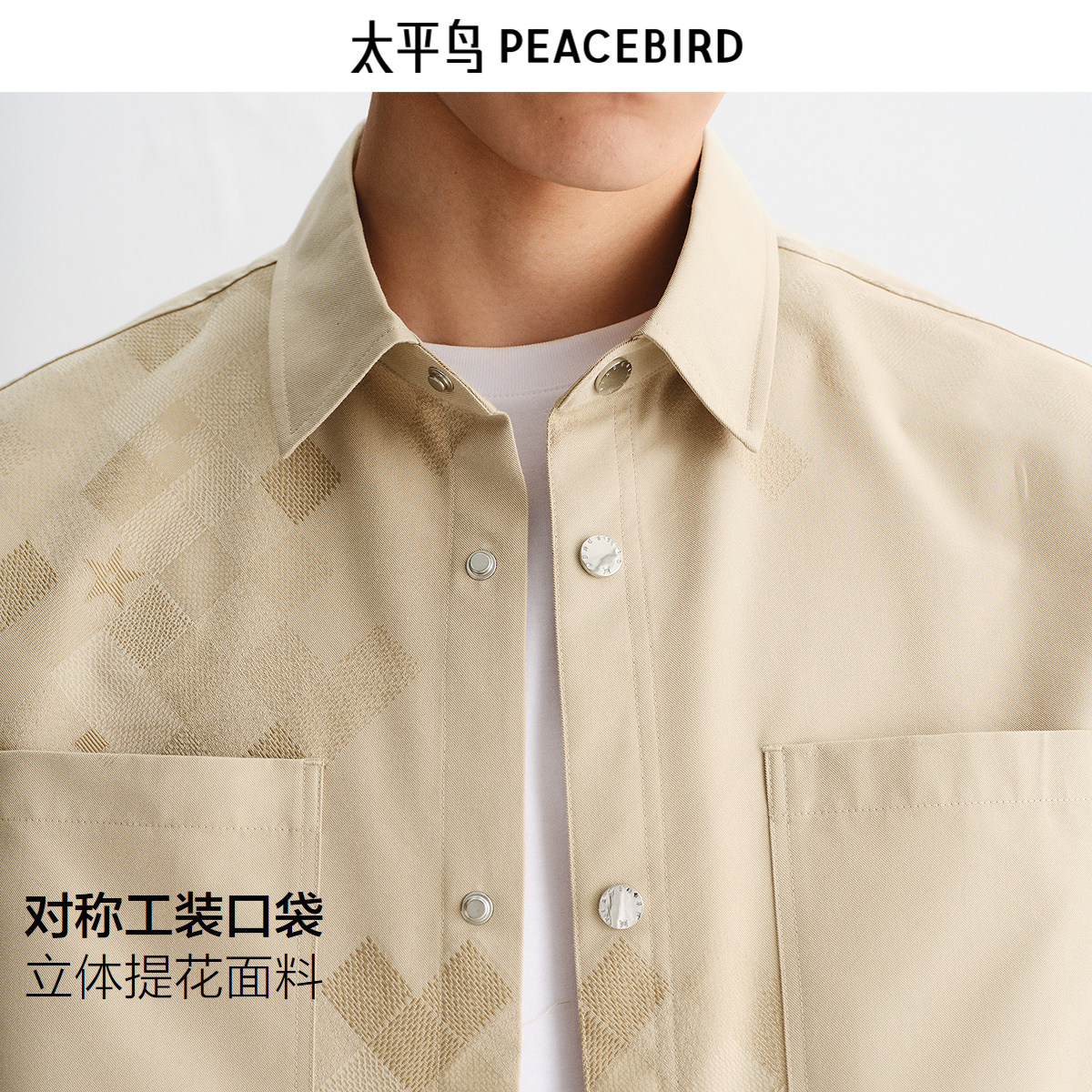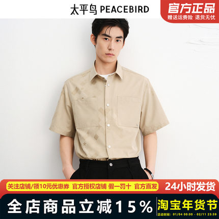【商场同款】太平鸟男装立体提花短袖衬衫潮外穿式上衣B1CJF3130