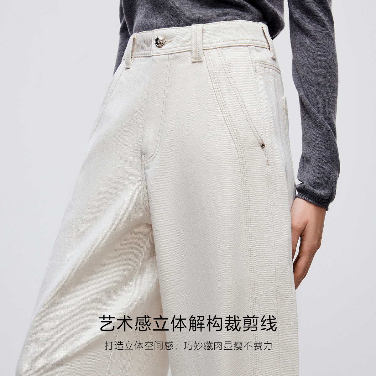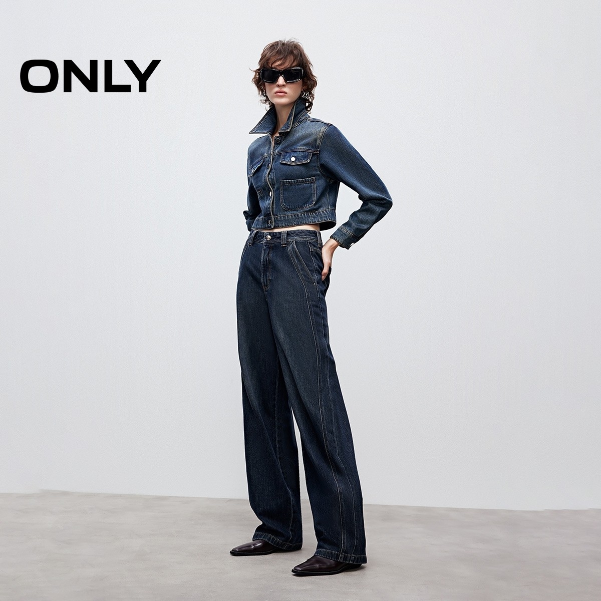 ONLY2025冬季新款斜插口袋立体裁剪宽松气球阔腿裤长裤牛仔裤女