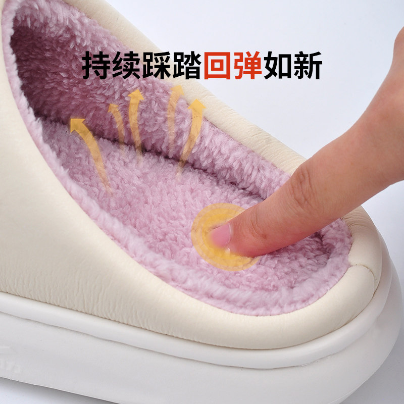 回力拖鞋情侣家居一对秋冬季防水厚底防滑一男一女皮面棉拖鞋女款