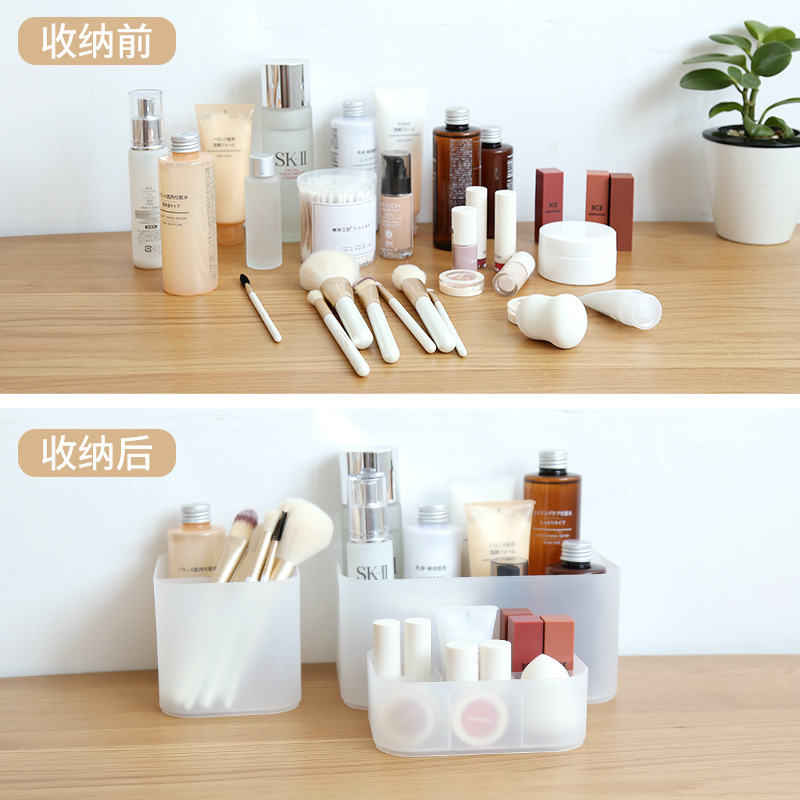 桌面文具笔架收纳盒化妆品盒子塑料磨砂透明带盖盒子护肤品置物架