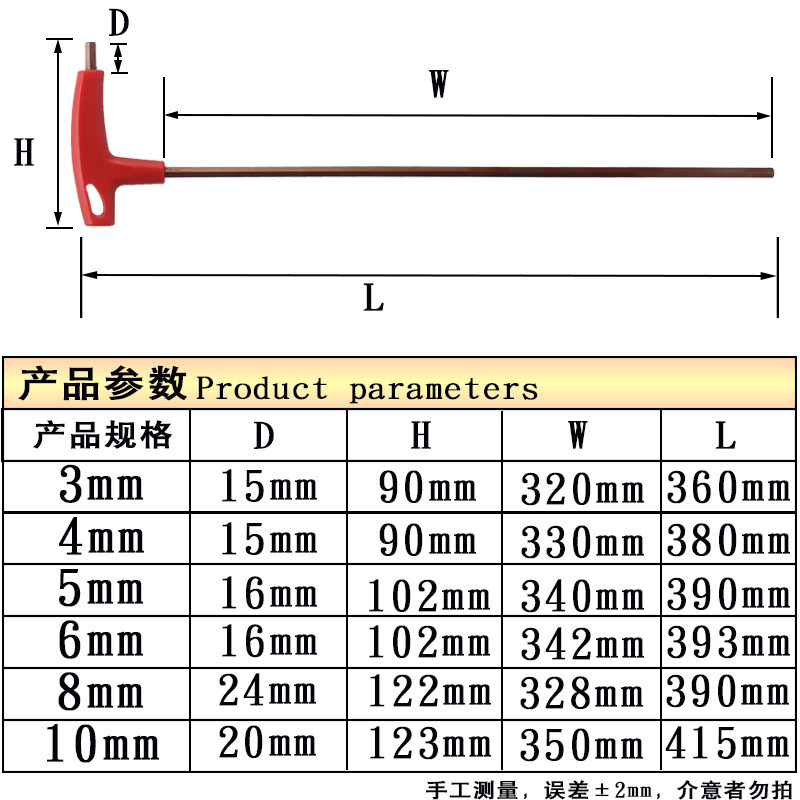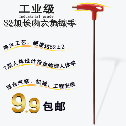 特长t型内六角扳手单个带手柄六棱螺丝刀六方扳手公制平头加长6角