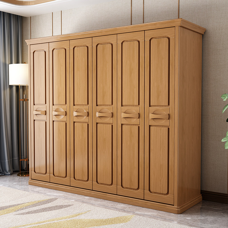 简约现代中式实木衣柜对开门组装二三四五K六门整体橡木加顶柜衣