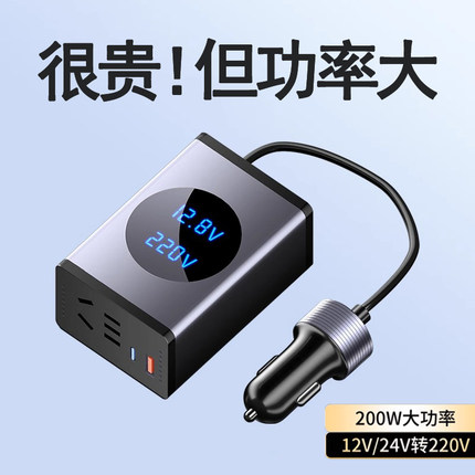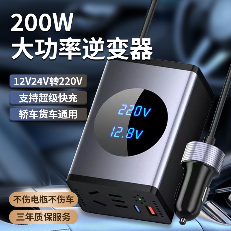 大功率车载逆变器12v24v转220v转换器高档车用充电器200w超级快充