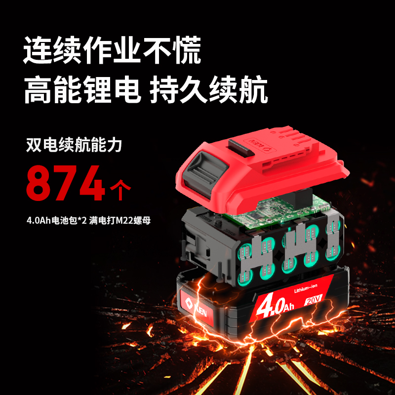 Ken锐奇锂电冲击扳手7520架子工汽修大扭力无刷电扳充电电动风炮
