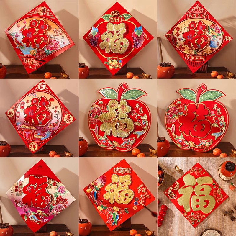 2025新款蛇年春节立体福字门贴装饰贴纸新年布置入户大门年画对贴