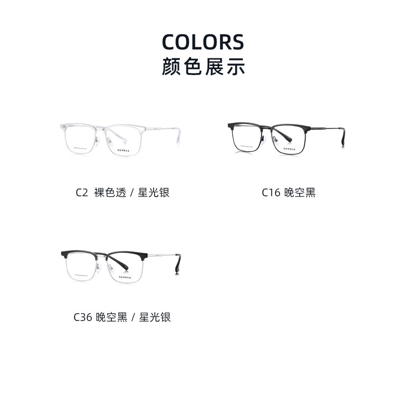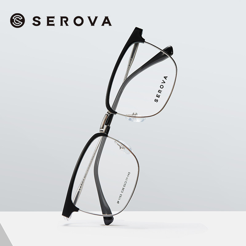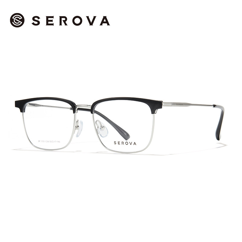 施洛华眼镜框商务半眉毛框眼镜架男可选配防蓝光镜片宝岛SP1153