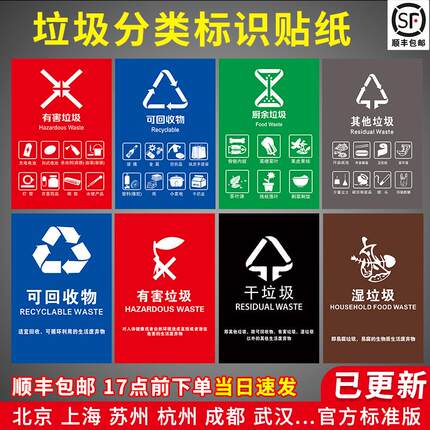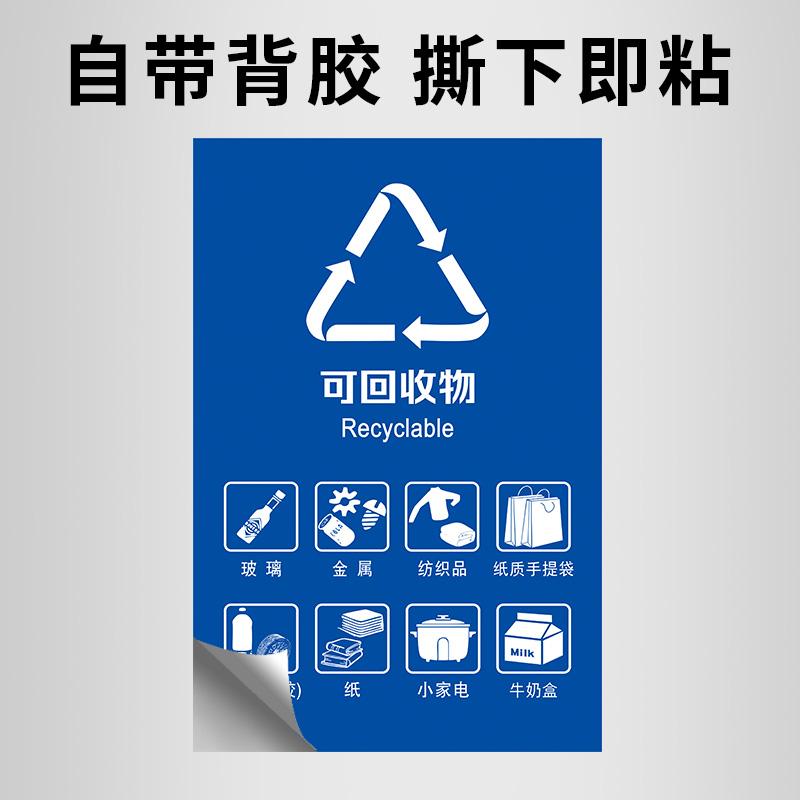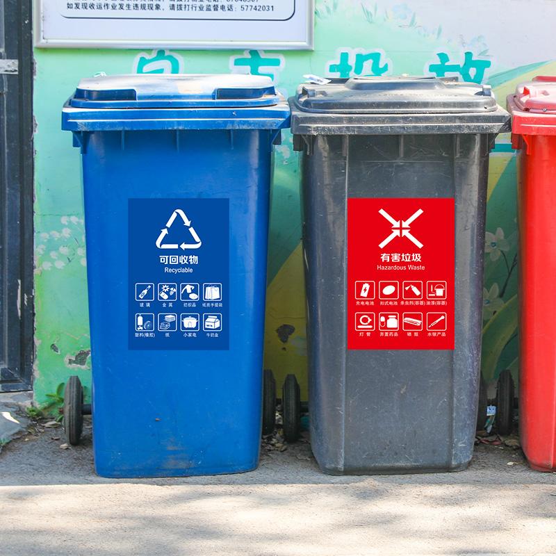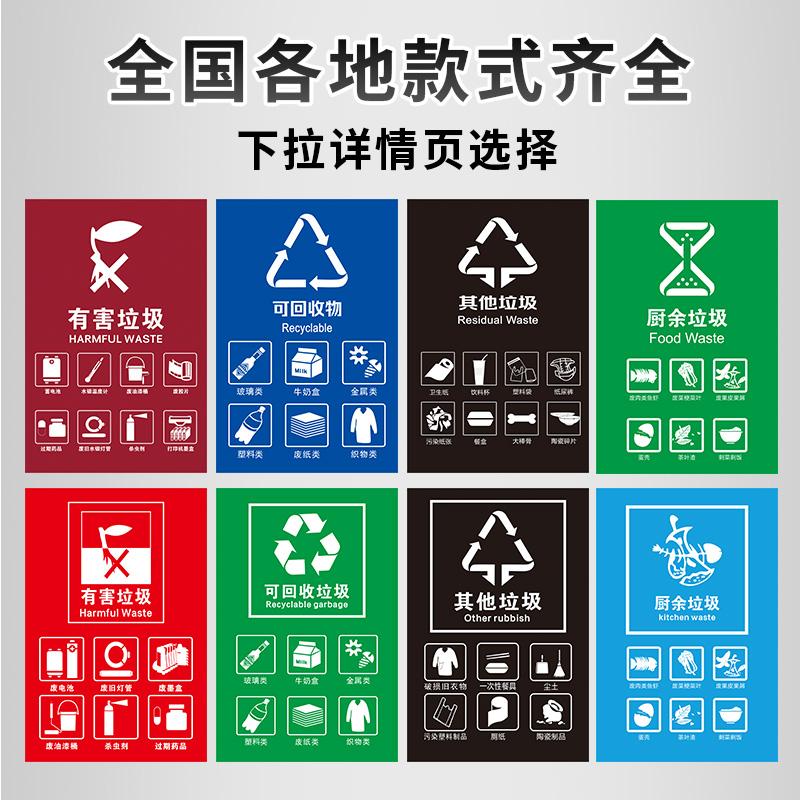 垃圾分类标识贴纸幼儿园上海北京杭州苏州垃圾桶标志不可回收易腐厨余干湿垃圾指示有害标语家用标识牌小海报