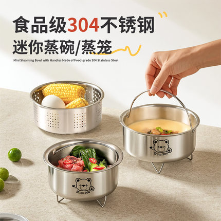 蒸蛋羹专用碗304食品级不锈钢蒸鸡蛋盘子炖盅蒸碗厨房神器辅食碗