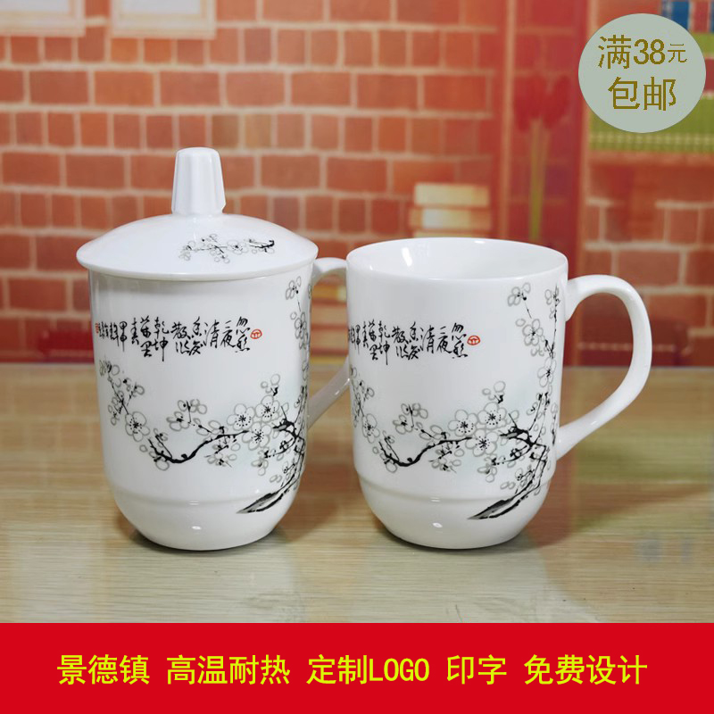 景德镇陶瓷茶杯会议杯办公杯酒店KTV棋牌室用瓷器杯厂家 定制logo