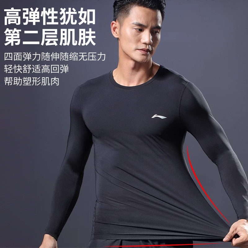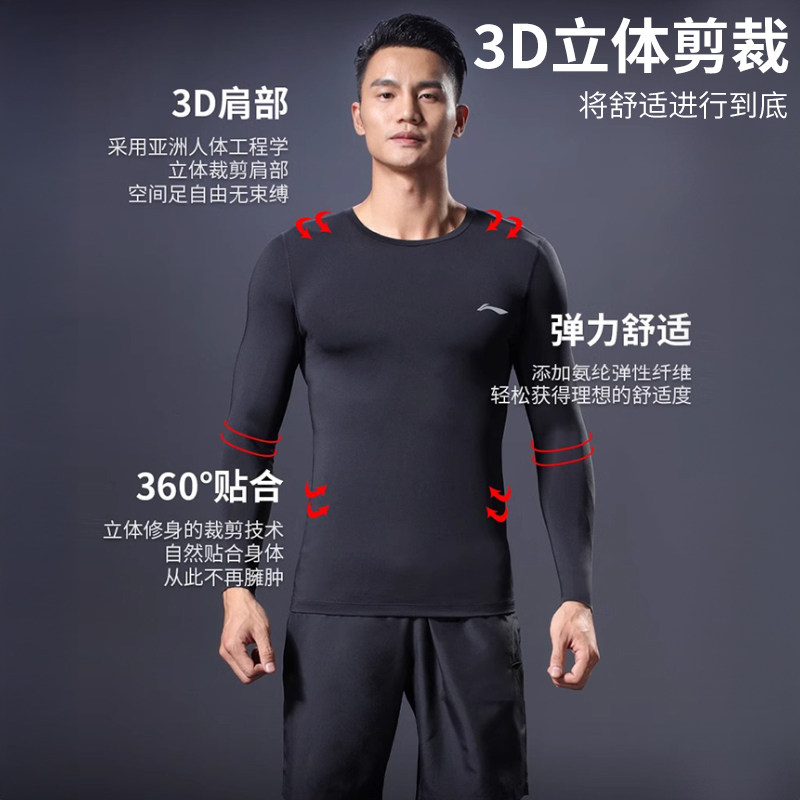 李宁跑步运动套装男秋冬季训练服健身衣服晨跑服紧身衣速干衣加绒