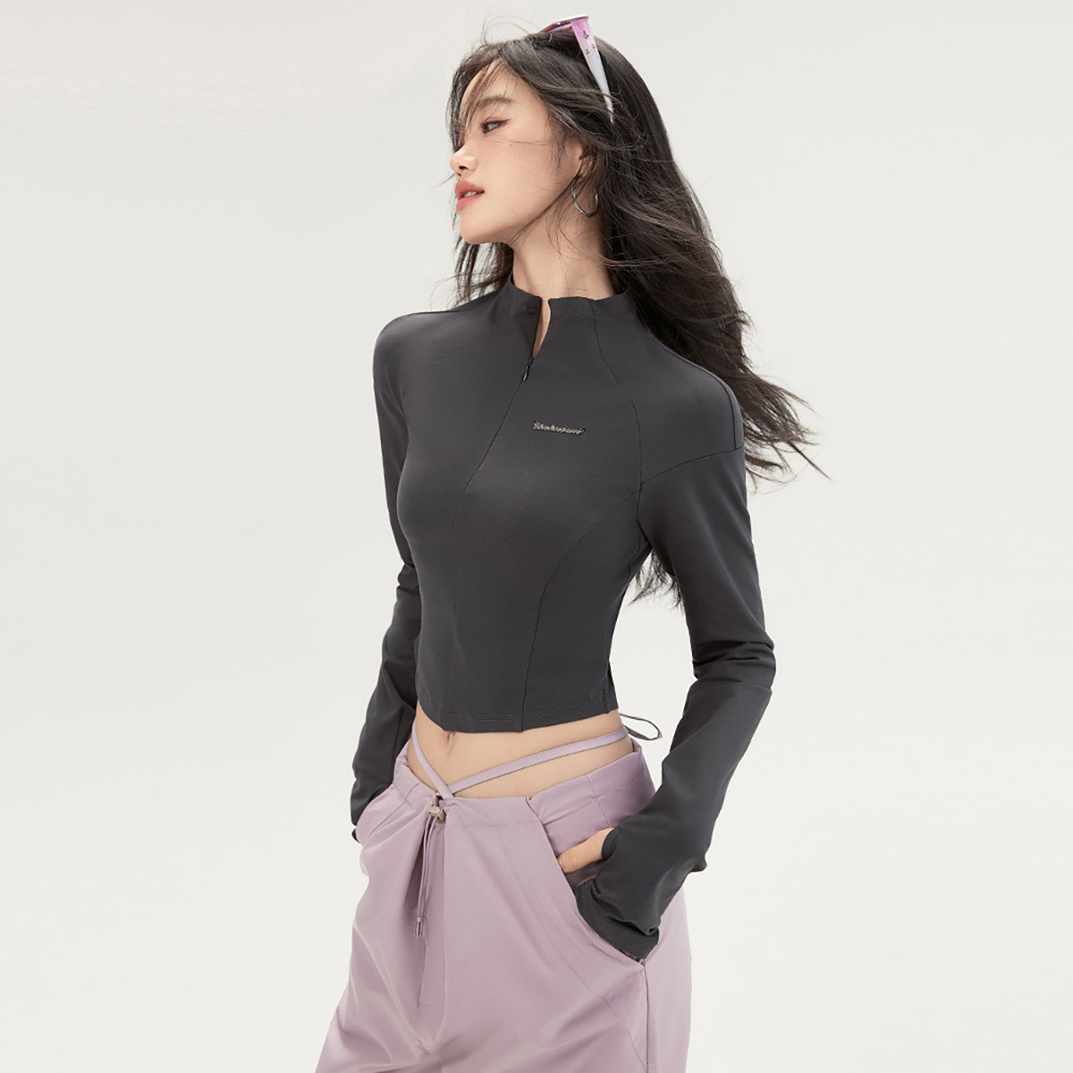 EPTISON短款半高领T恤女2025秋季新款美式复古辣妹修身内搭上衣