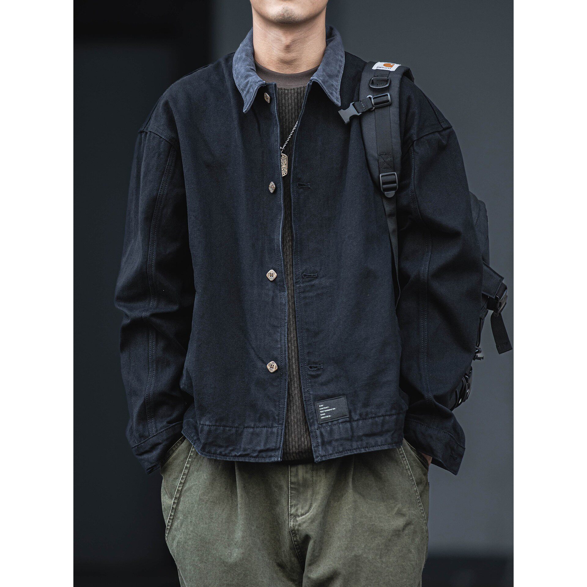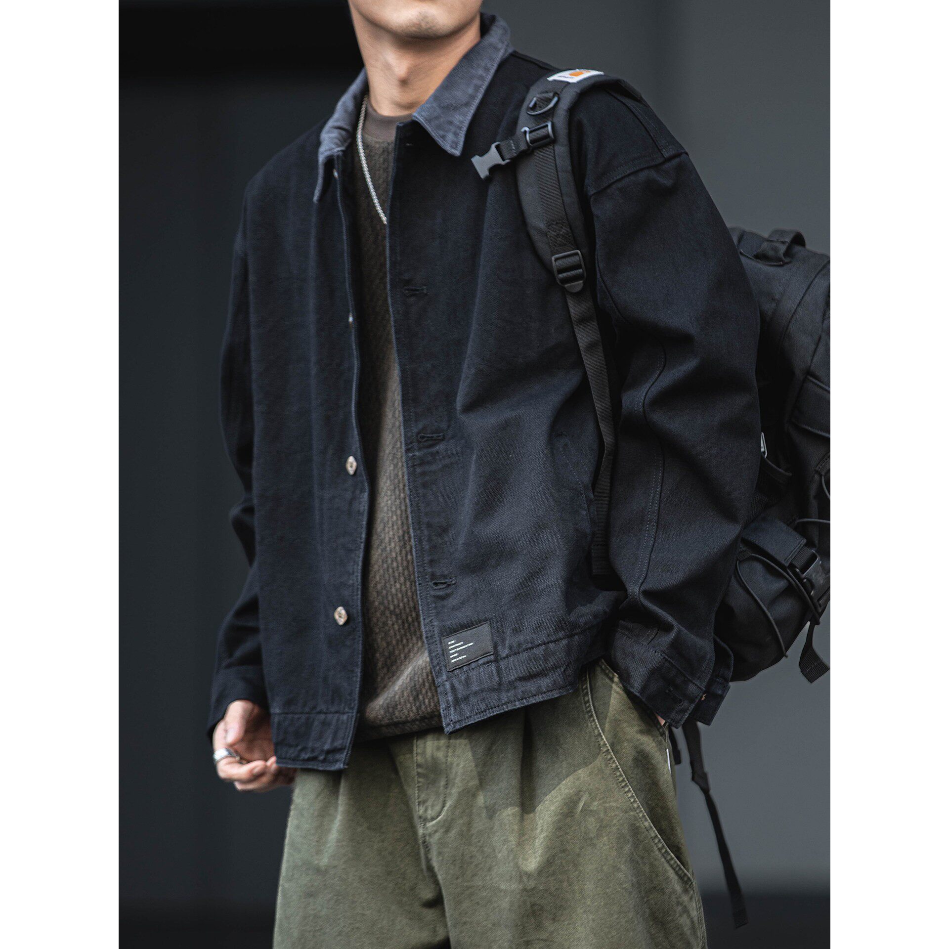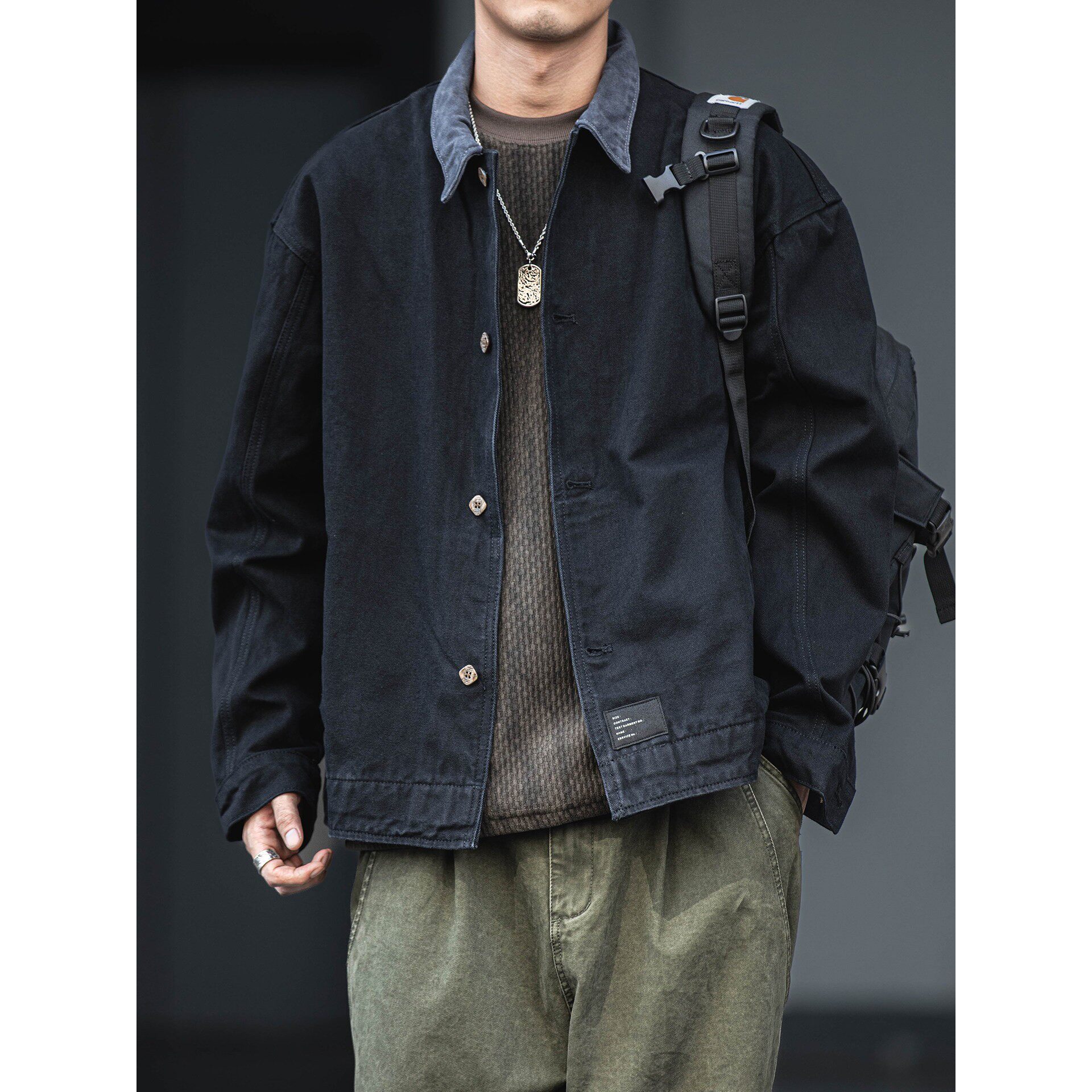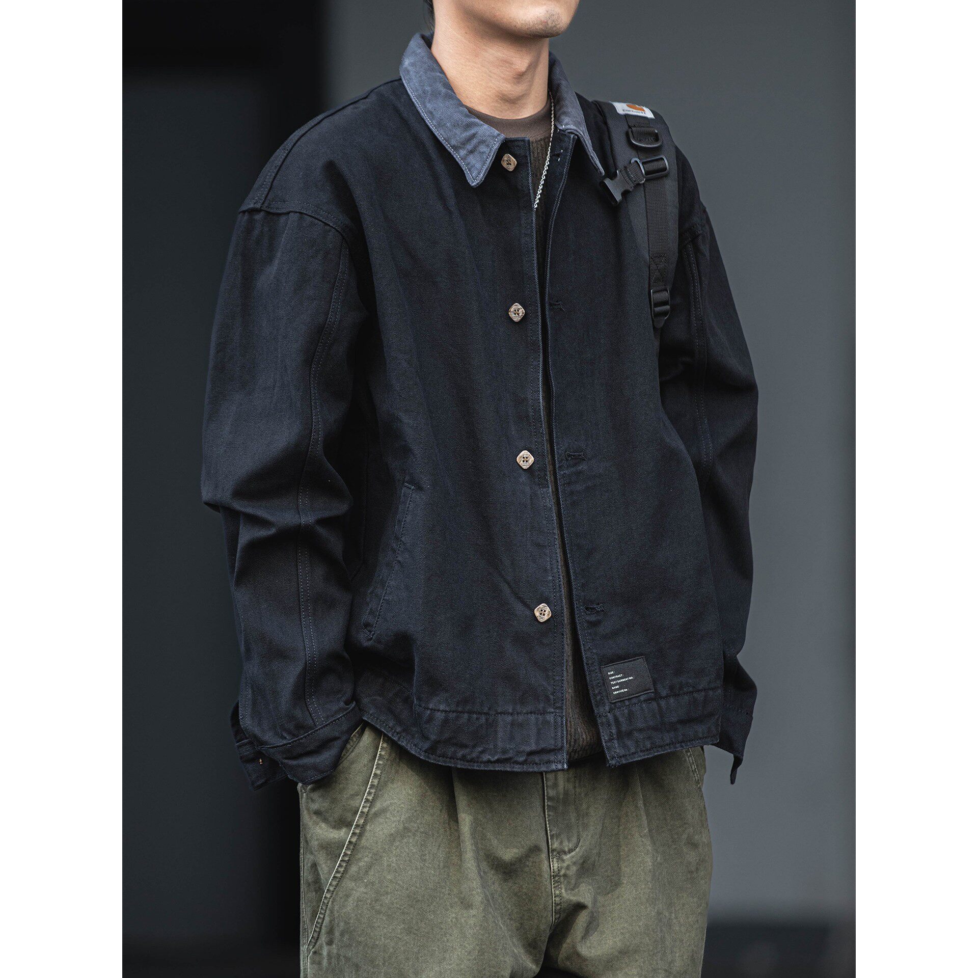 美式复古水洗做旧牛仔夹克男秋冬款宽松休闲百搭翻领工装外套上衣