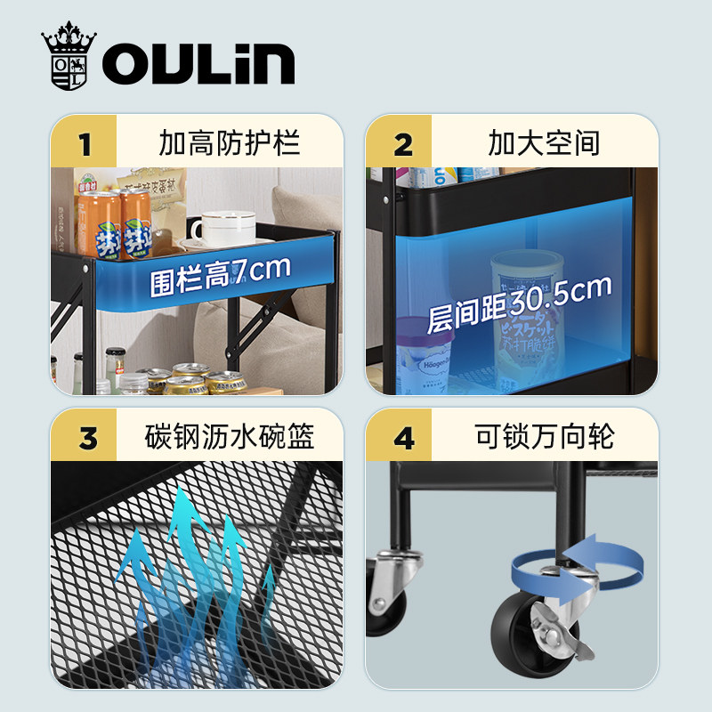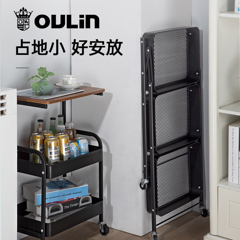 欧琳小推车厨房移动收纳架零食书架分层架卫生间置物架落地小推车