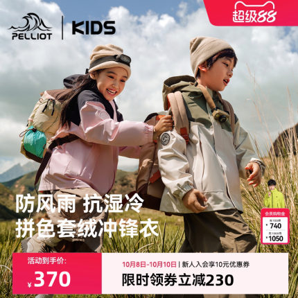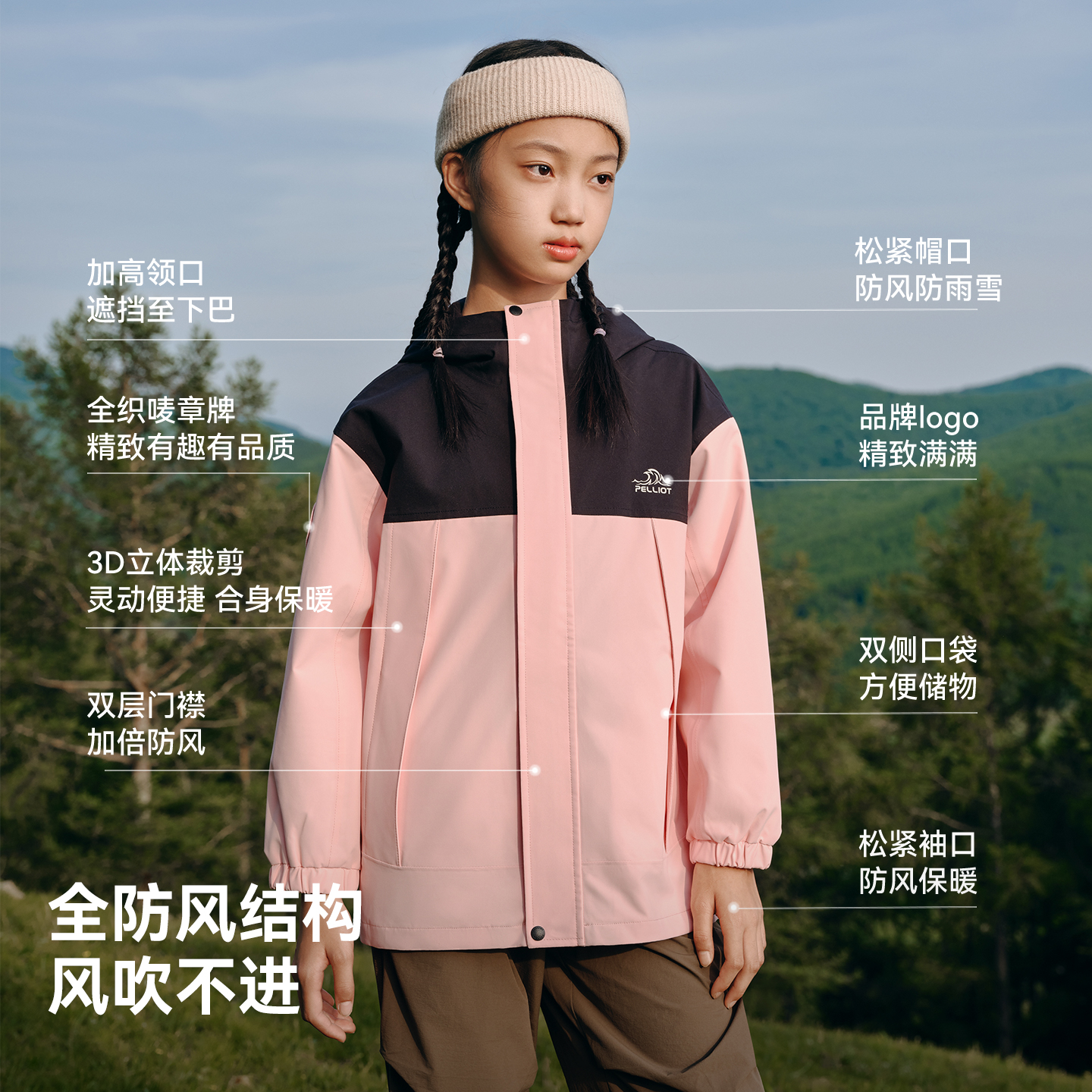 伯希和儿童冲锋衣三合一上衣秋冬户外可拆卸男女童保暖加绒外套