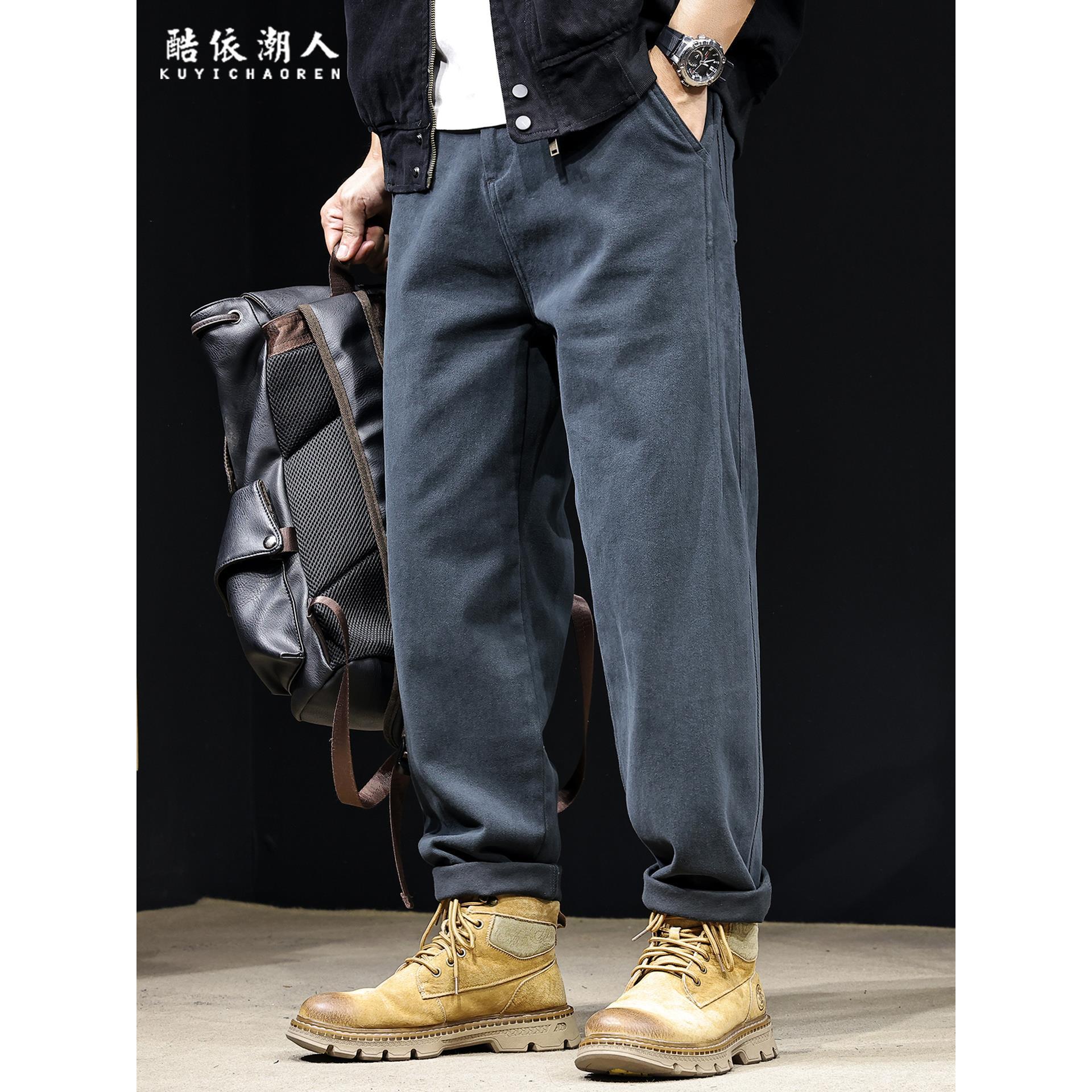 秋季2025新款直筒休闲裤男士潮牌宽松大码简约百搭长裤子锥形男裤