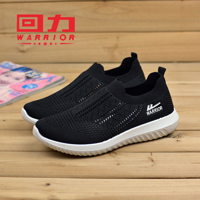 回力一脚蹬女鞋正品 百搭黑色透气时尚网面运动鞋轻便防滑懒人鞋