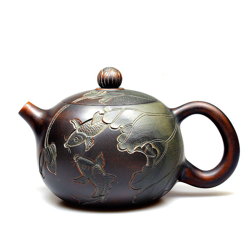 西施壶钦州坭兴陶茶壶名家纯全手工雕刻紫泥壶紫砂工艺老坭018