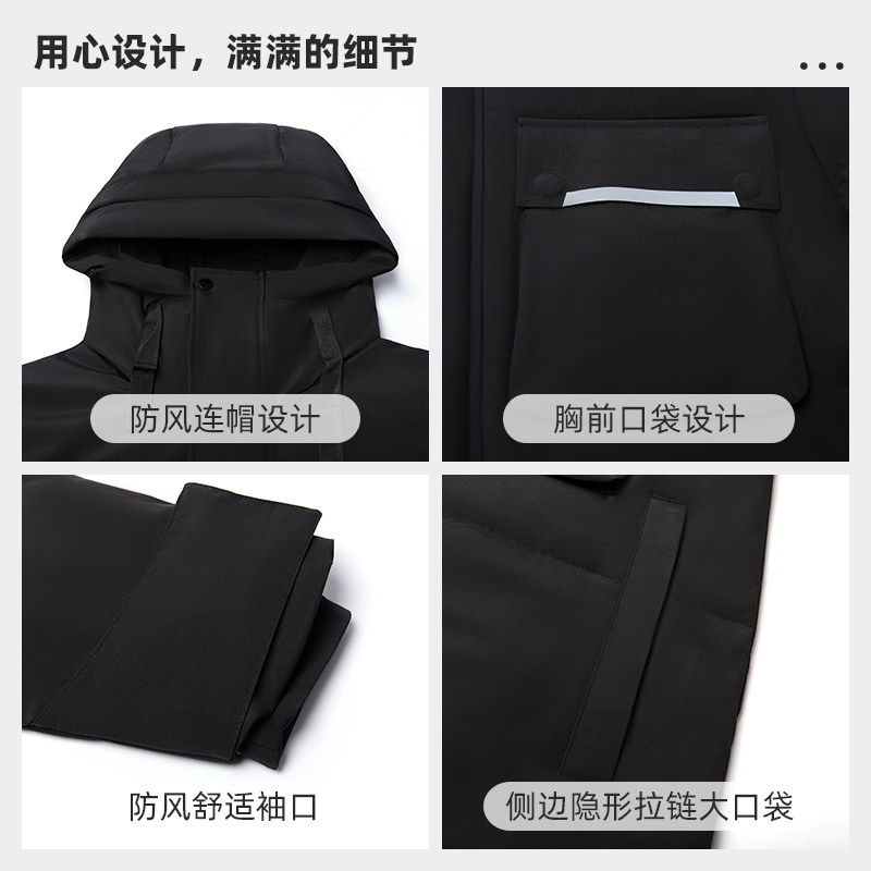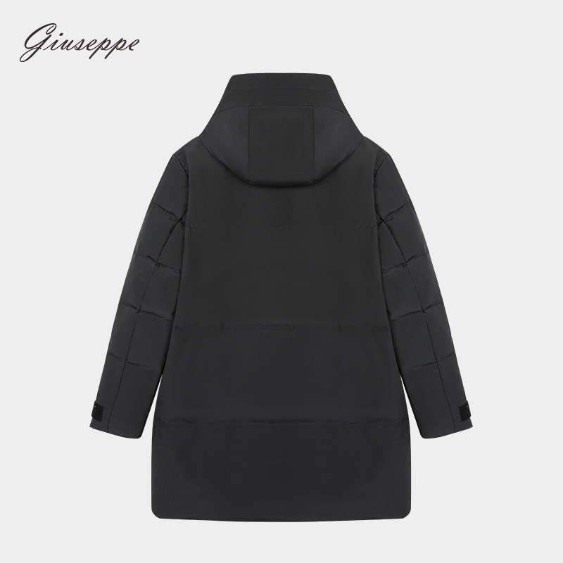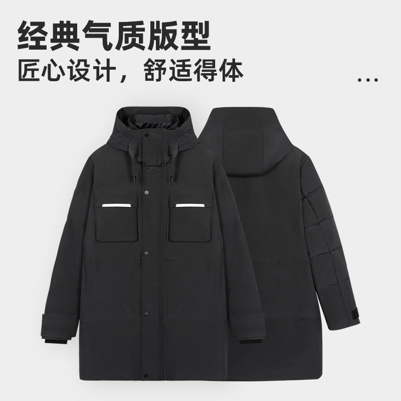 乔治白秋冬男拉链羽绒服休闲纯色外套防风保暖通勤带帽白鸭绒上衣