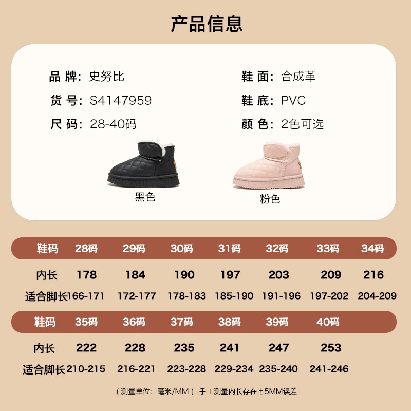 史努比童鞋男童雪地靴大棉靴秋冬2025新款男童鞋子女童棉靴子抗冻
