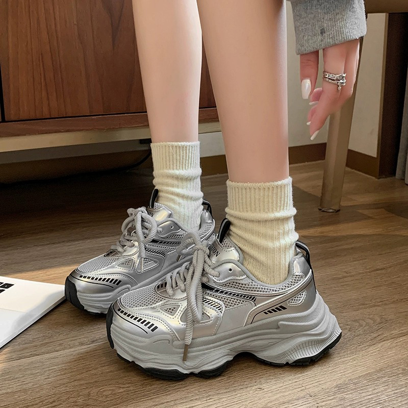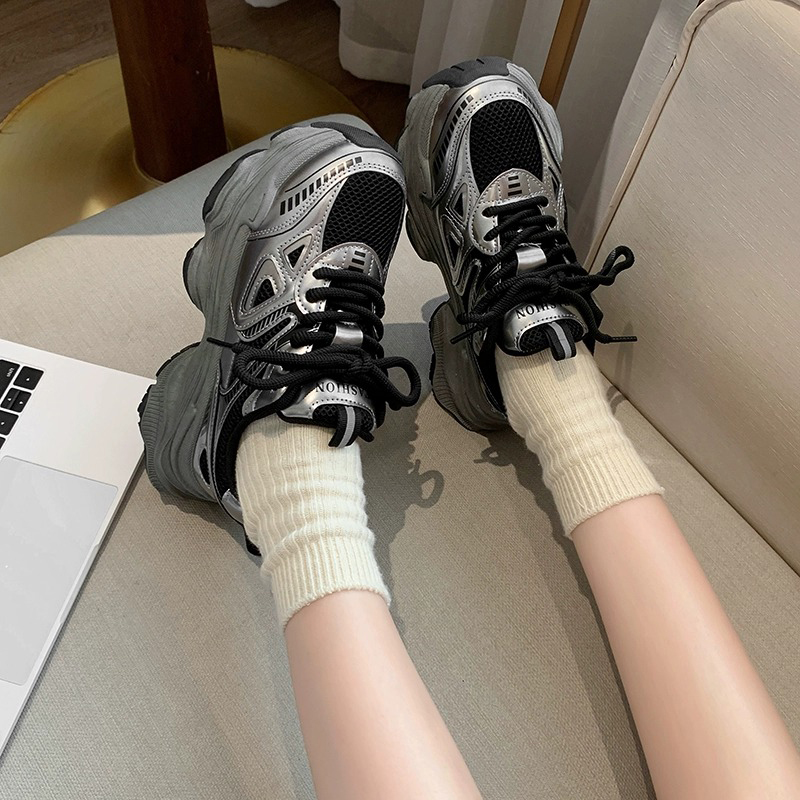 黑色老爹鞋女款2025新款爆款春夏季女鞋子百搭厚底增高休闲运动鞋