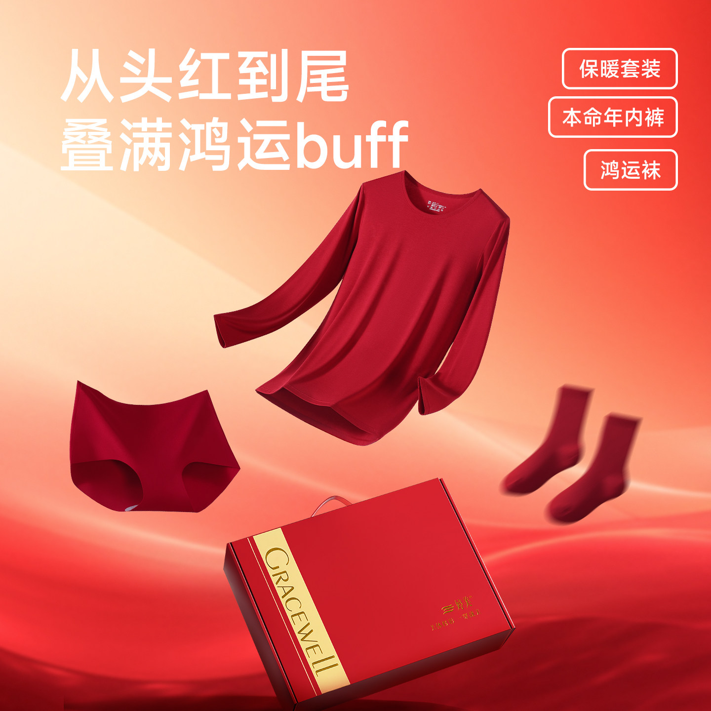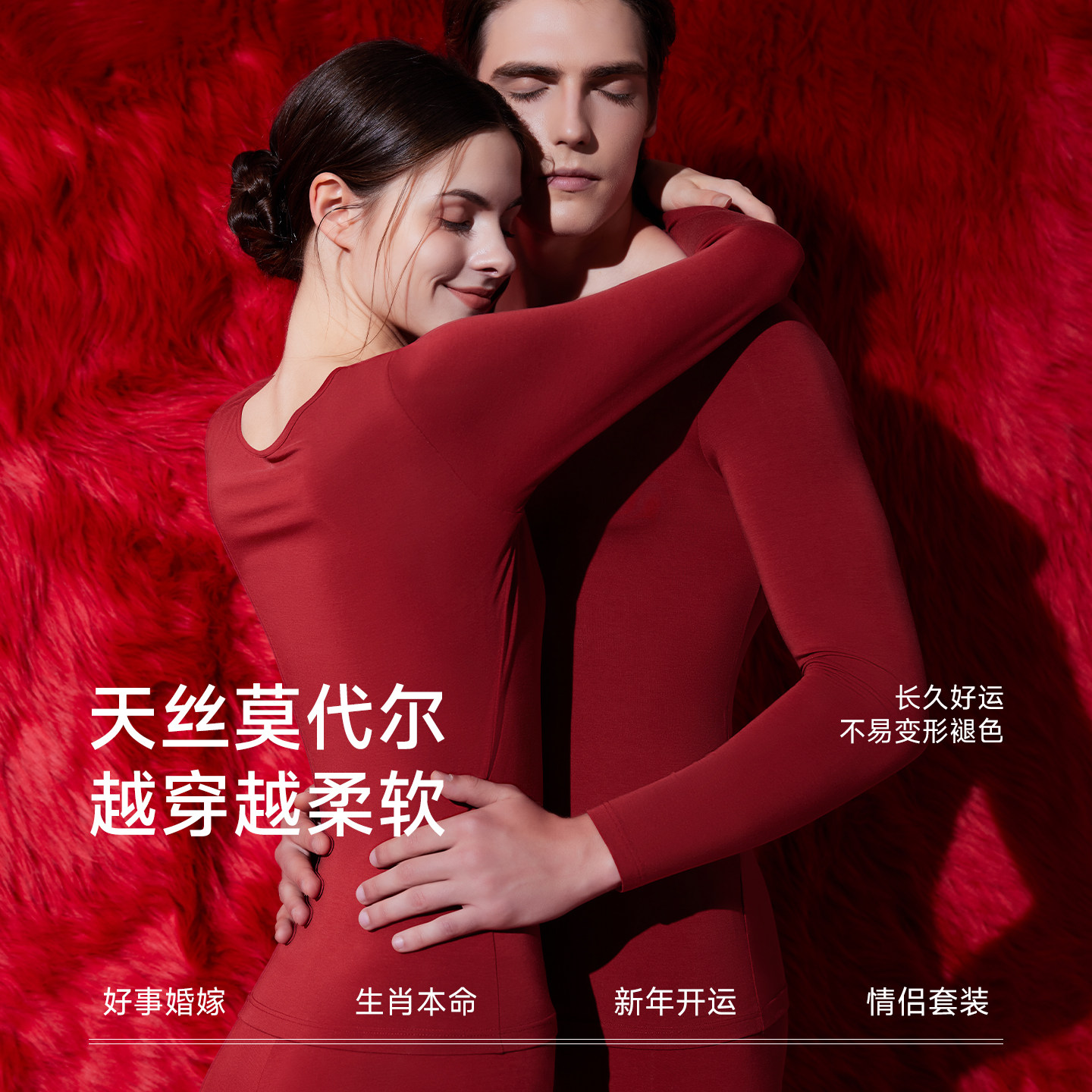 婷美红色本命年保暖内衣女士结婚情侣2026马年秋衣秋裤套装男冬季