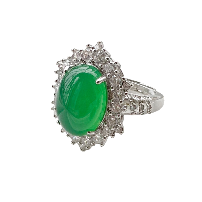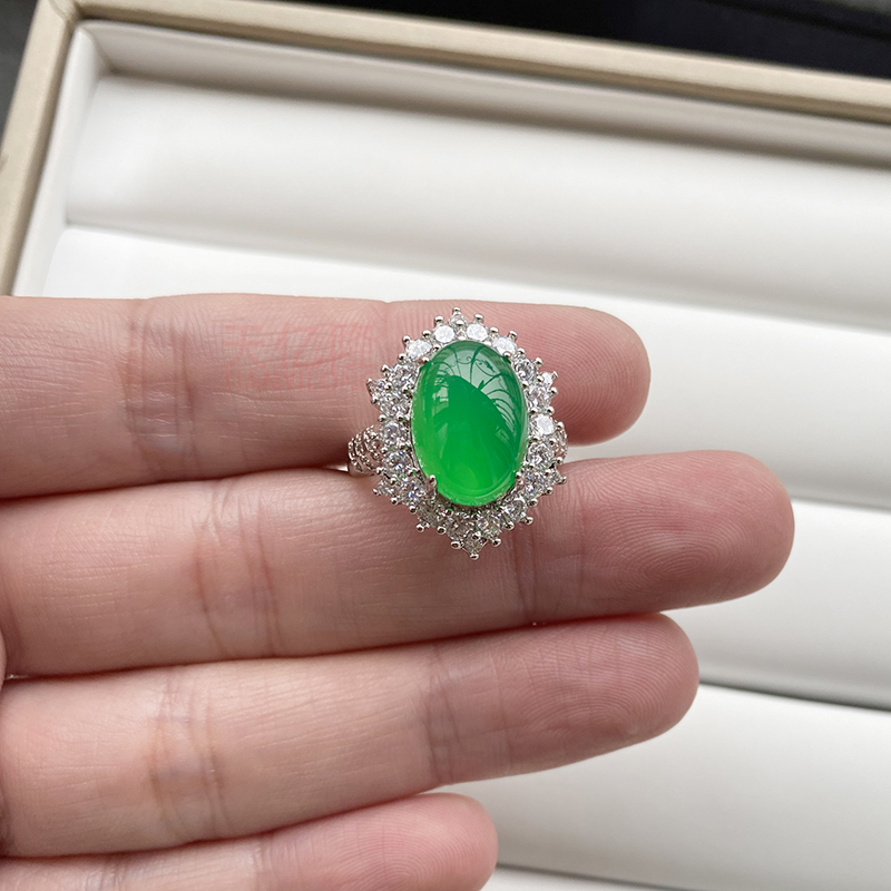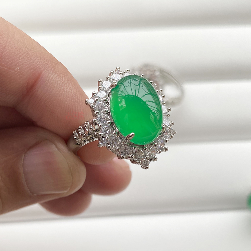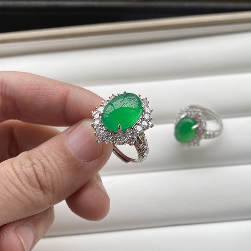 天然冰种玉髓戒指女款翡翠色玉石镶嵌宝石指环网红爆款绿玛瑙戒指