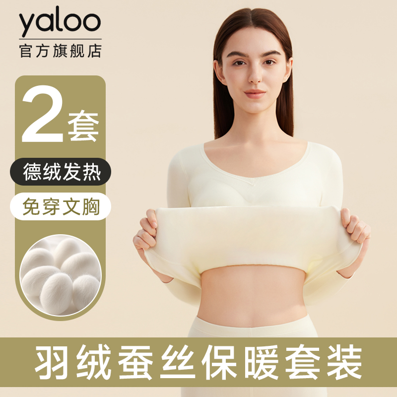 雅鹿女款保暖内衣2025新款冬季女士带胸垫上衣打底衫秋衣秋裤套装