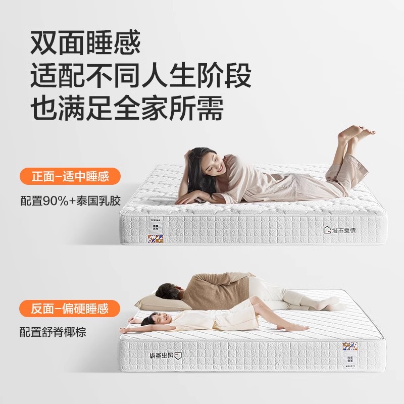 【大白垫】喜临门子品牌城市爱情席梦思弹簧软硬两用乳胶椰棕家用