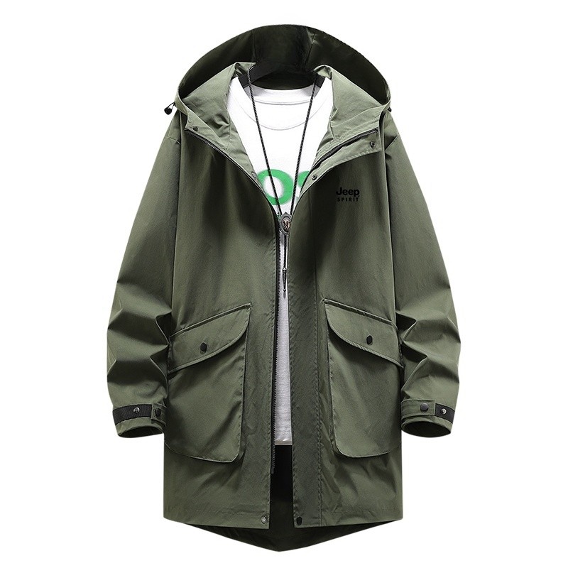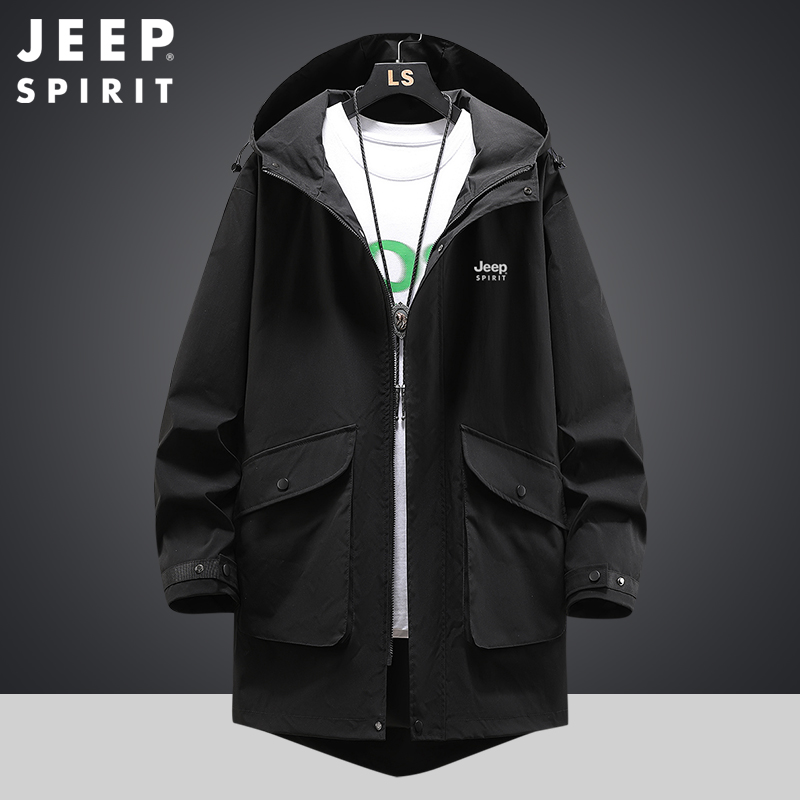 吉普jeep中长款风衣外套男春季新款宽松大码加肥加大休闲运动夹克