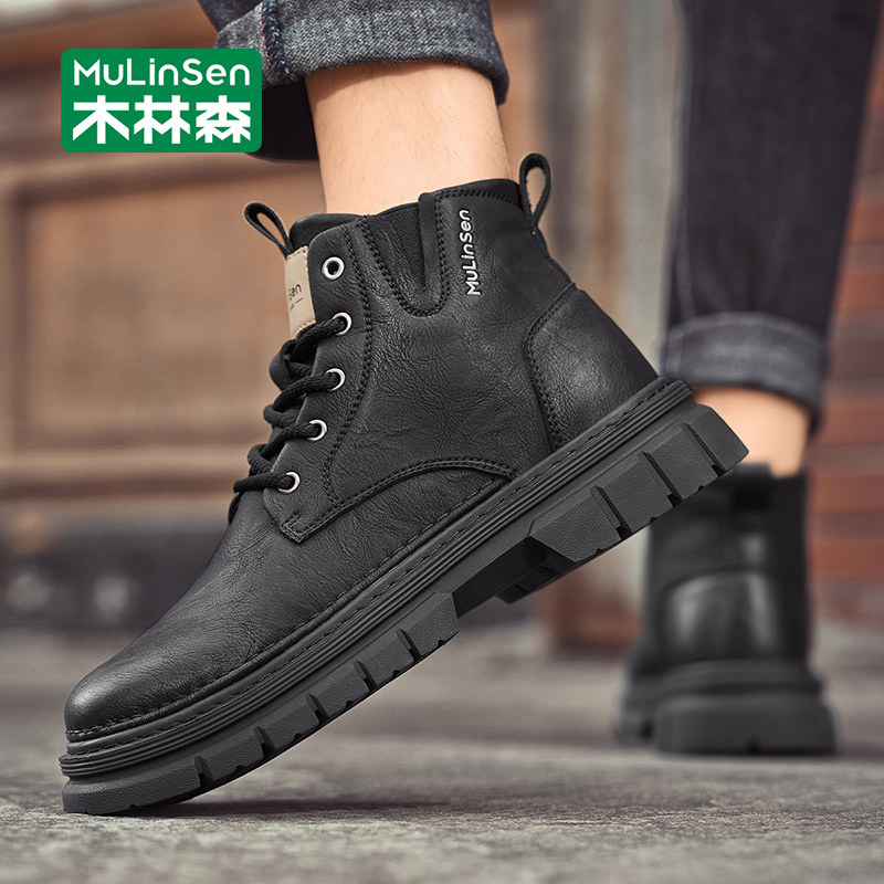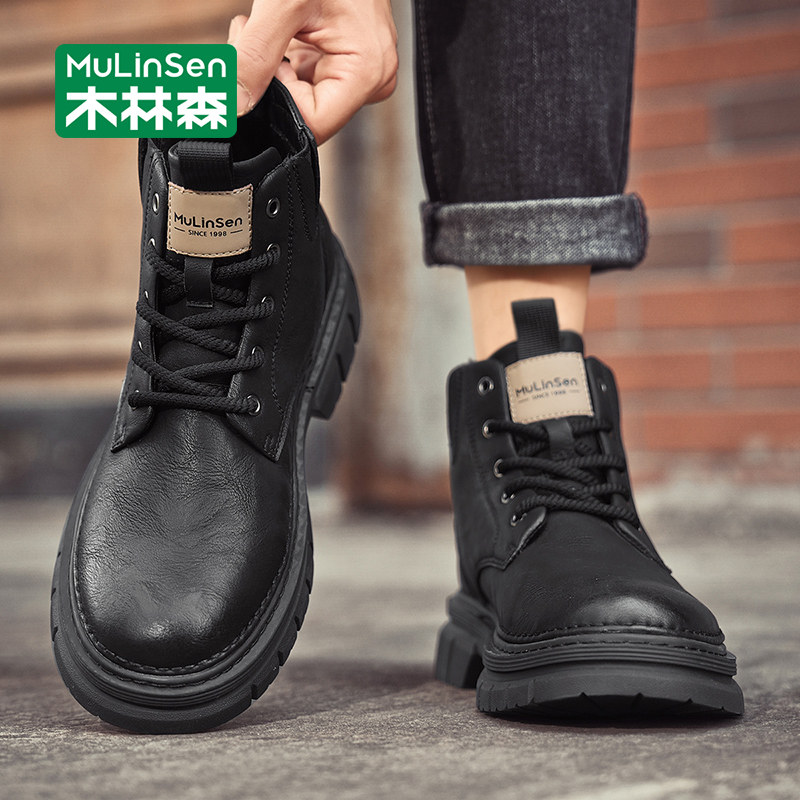 木林森马丁靴男款春秋2025新款高帮英伦风皮靴子男士冬季工装短靴