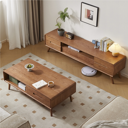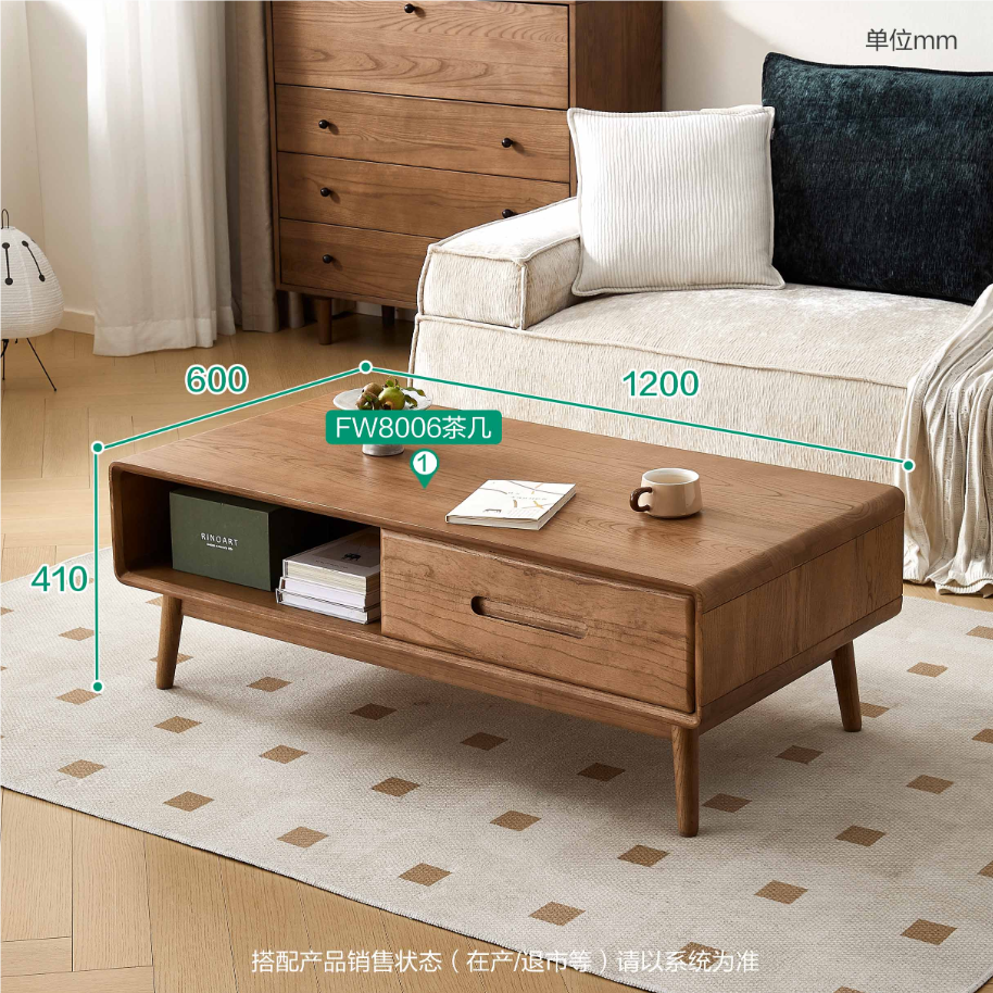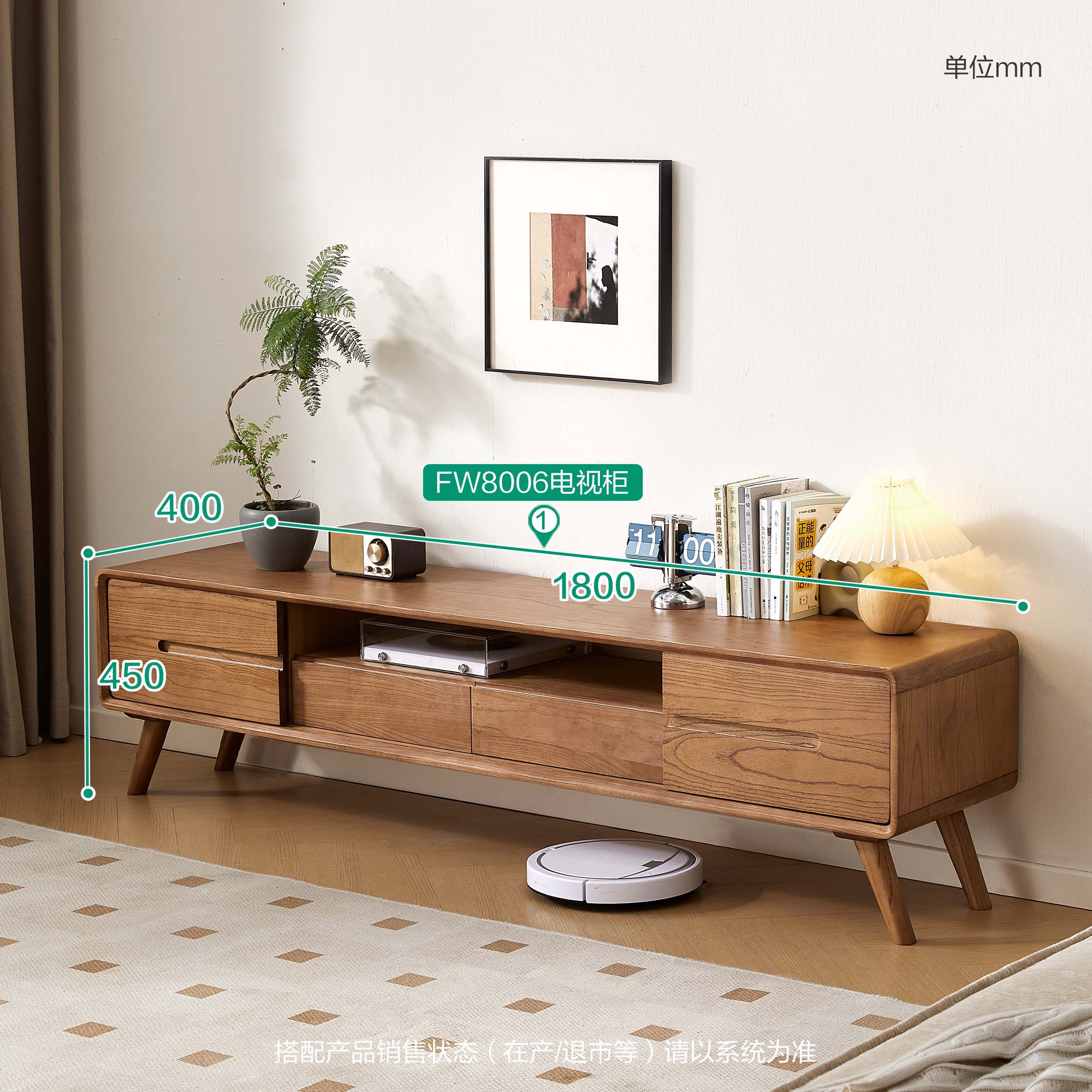 全友家居家具 门店同款 北欧风 FW8006 实木木面条形茶几 电视柜